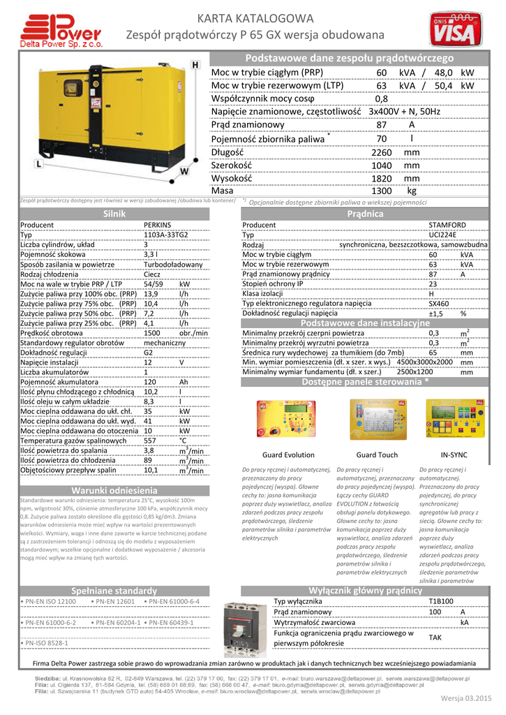 KARTA KATALOGOWA Zespół prądotwórczy P 65 GX wersja