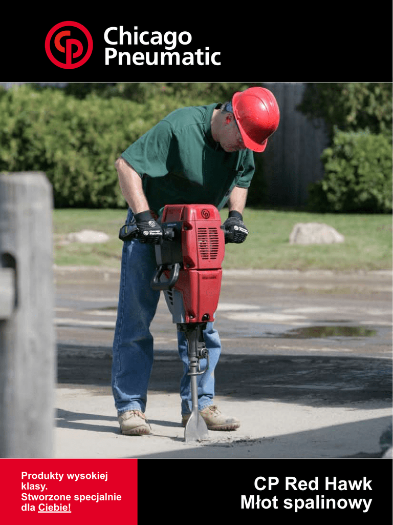 Produkty wysokiej klasy. Stworzone specjalnie dla Ciebie! CP Red Hawk Młot spalinowy Twój młot Red Hawk jest gotowy do akcji! Młot Red Hawk – nowy członek rodziny Chicago Pneumatic Od roku 1901 nazwa Chicago Pneumatic oznacza nowatorskie, wysokowydajne narzędzia budowlane. Najmłodszym członkiem rodziny jest młot spalinowy Red Hawk. Ten niezawodny, wytrzymały młot łączy w sobie zalety urządzenia przenośnego z wysoką wydajnością. czy agregaty hydrauliczne. Praktyczna skrzynia drewniana ułatwia transport urządzenia na miejsce pracy. Można ją po prostu załadować do furgonetki albo do bagażnika samochodu osobowego. Na miejscu pracy można transportować maszynę na specjalnym wózku, dostępnym jako opcja. Gotowe do pracy! Młot Red Hawk waży zaledwie 22,5 kg a jego napęd silnikiem spalinowym eliminuje potrzebę zasilania z zewnętrznych źródeł, takich jak sprężarki powietrza Sam się zdziwisz, jak mogłeś dotąd obywać się bez młota Red Hawk Zastosowanie tego wszechstronnego urządzenia nie ma ograniczeń! Młot Red Hawk, o energii udaru 24 J i częstotliwości 2600 uderzeń/min, ułatwia wykonanie nawet najtrudniejszych prac. Praktyczna skrzynia drewniana ułatwia transport młota. Rozkuwanie twardego, zmarzniętego gruntu. Kruszenie betonu. Uchwyty z tłumieniem wibracji to duża różnica. Młot Red Hawk nadaje się też doskonale do: n Wbijania pali i słupków ogrodzeniowych n Wbijania prętów n Wbijania śledzi namiotowych n Pobierania próbek gruntu n Podbijania podkładów kolejowych n Wbijania profili i rur Cięcie asfaltu. Podbijanie podkładów kolejowych i zagęszczanie gruntu. Młot spalinowy Red Hawk jest cenionym narzędziem w wielu dziedzinach, takich jak: wynajem maszyn i narzędzi, budowa dróg, remonty sieci wodnokanalizacyjnych, instalacji telekomunikacyjnych, poszukiwania geologiczne i wiele innych... Praca za pomocą młota Red Hawk jest prosta Młoty spalinowe – wygodne i wszechstronne Młoty spalinowe bez konieczności podłączania do sprężarki czy agregatu, bez węży i przewodów idealnie nadają się do wszelkich prac, wymagających ciągłego przenoszenia urządzeń, a także do zadań w oddalonych i trudno dostępnych miejscach. Prosta konstrukcja młota Red Hawk zapewnia też jego łatwą eksploatację i konswerwację. Niski poziom wibracji, emisji spalin i hałasu Młot Red Hawk to połączenie wysokiej wydajności z ergonomiczną konstrukcją. Uchwyty z tłumieniem wibracji redukują poziom drgań do 2,4 m/s2*. Kompaktowa budowa zapewnia doskonałą widoczność pola pracy i ułatwia obsługę. Dzięki zastosowaniu katalizatora i nowoczesnego gaźnika, młoty spełniają restrykcyjną amerykańską normę w zakresie emisji spalin EPA. Zastosowanie nowego tłumika wydechu pozwoliło obniżyć poziom hałasu ze 114 dB do 107dB, spełniając tym samym warunki Europejskiej Dyrektywy w zakresie hałasu NED. Dzięki tym cechom młot Red Hawk jest urządzeniem sprawnie wykonującym zadania – na pewno wartym swojej ceny. * Zgodnie z ISO 8662. Młot spalinowy Red Hawk Młot spalinowy Red Hawk to idealne narzędzie do wielu różnorodnych prac. n Waży tylko 22.5 kg i jest dostarczany we własnej skrzyni transportowej, którą można łatwo załadować do bagażnika samochodu osobowego. n Energia udaru 24 J przy 2,600 uderzeń/min. n Zużycie paliwa 1,4 l na godzinę. n Silnik dwusuwowy o pojemności 185 cm3, moc 2 kW. n Łatwy do uruchomienia dzięki skutecznemu układowi ssania i doskonałemu gaźnikowi oraz przyjaznym dla użytkownika instrukcjom obsługi. n Opcjonalna prowadnica linki rozruchu umożliwia uruchomienie młota, znajdującego się wyżej. n Uchwyty z tłumieniem wibracji. Model Red Hawk Masa Długość Głębokość Szerokość z uchwytami Uchwyt narzędzia Poziom hałasu Poziom wibracji kg mm mm mm mm * Zgodnie z ISO 3744. * Zgodnie z ISO 8662. 22.5 694 281 585 22 x 108 107 dB 2,4 m/s2 Nr katalogowy 8318 0900 00 Typ silnika Moc Układ chłodzenia Zapłon Paliwo Olej Mieszanka Pojemność zbiornika paliwa Zużycie paliwa Energia udaru Częstotliwość udaru Silnik dwusuwowy, jednocylindrowy, o pojemności 185 cm3 2 kW Powietrzem Elektroniczny rozruch ręczny Benzyna bezołowiowa Olej Atlas Copco do silników dwusuwowych 2% 1:50 1,2 l 1,4 l/godzinę 24 J 2600 uderzeń/ min. Ponad 100-letnie doświadczenie Od roku 1901 nazwa Chicago Pneumatic oznacza nowatorskie, wysokowydajne narzędzia budowlane. Obecnie, nasza światowa sieć biur sprzedaży oferuje szeroki asortyment narzędzi budowlanych, takich jak lekkie młoty pneumatyczne i hydrauliczne, czyszczarki, wiertarki, młotko-wiertarki, pompy hydrauliczne do ścieków i mułu oraz wiele innych. Narzędzie robocze 1 Podbijak torowy Długość robocza Szerokość ostrza Masa Nr katalogowy mm (in.) mm (in.) kg (lb) 390 (15 1/2) 90 (3 1/2) 3.0 (6.5) Podbijak torowy 460 (18) 90 (3 1/2) 3.2 (7.0) 9245 2823 30 550 (22) 90 (3 1/2) 3.9 (8.5) 9245 2822 40 2 Szpicak 350 (14) 1.4 (3.1) 3083 3228 00 Szpicak 480 (19) 2.0 (4.5) 3083 3229 00 3 Przecinak szeroki 240 (9 1/2) 45 (1 3/4) 1.2 (2.7) 3083 3231 00 Przecinak szeroki 340 (13 1/2) 45 (1 3/4) 1.4 (3.1) 3083 3230 00 Przecinak szeroki 380 (15) 75 (3) 2.6 (5.7) 3083 3232 00 Przecinak szeroki 450 (18) 45 (1 3/4) 2.0 (4.5) 3083 4071 00 4 Przecinak do asfaltu 350 (14) 125 (5) 3.0 (6.5) 9245 2812 90 5 Przecinak do gruntu 280 (11) 75 (3) 2.7 (6.0) 3083 3233 00 6 Łopata 330 (13) 120 (4 3/4) 3.6 (8.0) 3083 3234 00 Narzędzie do wbijania 7 słupków 195 (7 3/4) 42 (1 11/16) 1.2 (2.6) 3083 3241 00 8 Łopata do gliny 350 (14) 125 (5) 3.4 (7.5) 3083 3235 00 9 Przecinak klinowy 380 (15) 35 (1 3/8) 2.8 (6.2) 3083 3236 00 10 Narzędzie do wbijania profili 195 (7 3/4) 55 (2 1/8) 2.5 (5.5) 9245 2822 80 11 Trzon 185 (7 1/4) 1.3 (2.9) 3083 3238 00 Stopa zagęszczająca, 12 okrągła 175 (7) 7.5 (16.5) 3083 3252 10 13 Stopa zagęszczająca, kwadratowa 175 (7) 5.7 (12.5) 3083 3239 00 14 Stopa zagęszczająca kwadratowa kompl. 175 (7) 7.0 (1