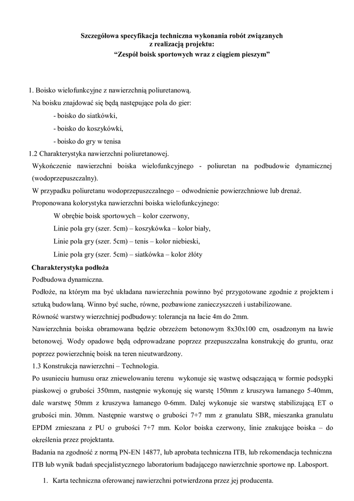 szczegółowa specyfikacja techniczna boisko wielofunkcyjne