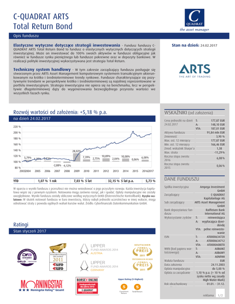 Elastyczne wytyczne dotyczące strategii inwestowania - Fundusz funduszy CQUADRAT ARTS Total Return Bond to fundusz o elastycznych wytycznych dotyczących strategii