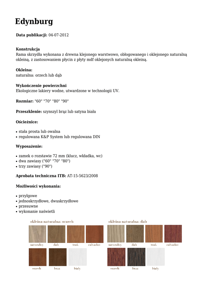 okleiną, z zastosowaniem płycin z płyty mdf oklejonych naturalną okleiną.