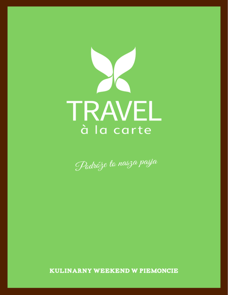sza pasja Podróże to na KULINARNY WEEKEND W PIEMONCIE Kulinarny weekend w Piemoncie: Wino, trufle i wspaniała kuchnia 11–15 listopada 2015 Proponujemy udział w degustacji wspaniałych trufli i równie wyśmienitych win. OTO PROGRAM: Dzień 1. Przelot z Warszawy do Mediolanu Z lotniska w Mediolanie przejazd autobusem do centrum, na Dworzec Główny – Milano Centrale. Z dworca dojeżdża się wygodnie taksówką do wybranego hotelu. My proponujemy hotel Four Seasons, w pobliżu „kwadratu mody”. To najlepszy hotel w Mediolanie. Ale można również zamieszkać w innym. Hotele w pobliżu Duomo di Milano, czy La Scala są przyzwoite i rozmaite – w każdej kategorii i w każdej cenie. Dzień 2. Mediolan – czas wolny na spacer po mieście i słynnym „kwadracie mody”. Późnym popołudniem wynajem samochodu i przejazd z Mediolanu do miejscowości Tigliole (ok. 150 km) Tigliole to mała, spokojna miejscowość w prowincji Asti, w odległości 35 km od Turynu i około 15 km od Asti. Do miasta trufli – Alby jedziemy około 35 minut. Tigliole liczy około 1800 mieszkańców. Można tam obejrzeć mały kościołek, ale… niewiele więcej. To nie jest wioska, jakie znamy z południa Włoch. Widać dzięki temu różnicę między południem a północą kraju. Zamiast zwiedzania można spokojnie pospacerować przed kolacją. Wszędzie jest czysto i spokojnie. Widoki, także na bujne winnice, zachwycają. W okolicy uprawia się winorośl odmian Barbera, używane do produkcji czerwonych win Barbera d’Asti i Barbera del Monferrato. W Tigliole polecamy Ca`Vittoria – mały, kameralny hotel rodzinny - 10 pokoi, indywidualnie umeblowanych - pod dachem którego żyją 3 generacje, a nad wszystkim czuwa niezastąpiony signor Aldo – głowa rodziny. Ca`Vittoria słynie ze wspanialej kuchni, wyróżnionej nie tylko symbolem sztućców Michelin, ale też dodatkową gwiazdką za wspaniałą kuchnie. Tutaj gotują, wspaniale, panie Alessandra i Valentina. Hotel dysponuje basenem, słonecznym tarasem i wspaniałą rodzinną atmosferą, która sprawia, że już zaraz po wjeździe z ulicy na hotelowy parking, czujemy się jak w domu. Dzień 3. Przed południem proponujemy wybrać się na poszukiwanie trufli. Na Państwa życzenie zorganizujemy spotkanie z Tartufaio by wspólnie przeżyć przygodę w poszukiwaniu trufli. Popołudnie to czas na zwiedzenie winnic Barolo. Jeśli Państwo zapragną – chętnie polecimy lokalne tawerny, w których serwują typowe dania regionalne. Dzień 4. Proponujemy zwiedzanie Turynu, stolicy Piemontu i po Mediolanie największego miasta przemysłowego Włoch. To siedziba koncernu Fiata. A w katedrze turyńskiej przechowywany jest znany i cenny Całun Turyński. Postarajcie się go zobaczyć. Dzień 4. Po wspaniałym śniadaniu w Ca`Vittoria – powrót na lotnisko w Mediolanie. A potem już tylko przelot z Mediolanu do Warszawy. Życzymy przyjemnej podróży! CENA: 2810 PLN* ZA OSOBĘ Cena obejmuje: - przelot Warszawa-Mediolan-Warszawa PLL LOT, - klasa ekonomiczna - 4 noclegi w hotelu Ca`Vittoria ***w pokoju dwuosobowym ze śniadaniami - wynajem samochodu VW Golf z/do lotniska Milano-Malpensa - ubezpieczenie podstawowe KL i NW *Cena wg. kalkulacji z dnia 20.07. 15 TRAVEL a’ la carte vis-à-vis Hotelu Sheraton ul. Wiejska 20 00-490 Warszawa w w w.travelalacar te.pl