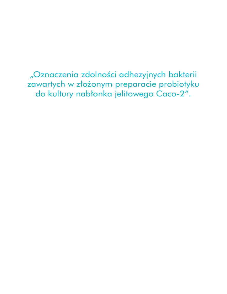 „Oznaczenia zdolności adhezyjnych bakterii zawartych w złożonym preparacie probiotyku do kultury nabłonka jelitowego Caco-2”. „Oznaczenia zdolności adhezyjnych bakterii zawartych w złożonym preparacie probiotyku do kultury nabłonka jelitowego Caco-2”. Prof. dr hab. med. Jacek Piątek Katedra Fizjologii Człowieka Uniwersytetu Medycznego im. Karola Marcinkowskiego w Poznaniu. Kierownik Oddziału Chorób Wewnętrznych Szpitala w Jarocinie. Streszczenie Na rynku można spotkać coraz większą ilość produktów (leki, suplementy diety) zawierających różne szczepy bakteryjne należące do probiotyków. Jednym z najważniejszych wykładników efektywności działania preparatów zawierających bakterie probiotyczne jest obok przeżywalności ich zdolność adhezji do nabłonka jelitowego. Cel pracy: Celem pracy było zbadanie adhezji bakterii zawartych w złożonym z 9 różnych szczepów bakteryjnych preparacie (4 Lactobacillus, 3 Bifidobacterium, 1 Lactococcus, 1 Streptococcus) do nabłonka jelitowego Caco-2. Metodyka: Do oznaczenia właściwości adhezyjnych bakterii probiotycznych zawartych w badanym preparacie zastosowano dojrzałą 17-dniową kulturę nabłonka jelitowego Caco-2. Zawartość preparatu probiotyku (4,5 x 109 kom.) zawieszono w 4,5 ml soli fizjologicznej. Hodowlę mikroorganizmów założono na płynnym podłożu MRS. Na podstawie wyników wcześniej przeprowadzonych doświadczeń obliczono objętość zawiesiny komórek zawierającą odpowiednio 5 x 106, 5 x 107, 5 x 108 komórek. Obliczone parametry: Stopień adhezji [%] = (ilość bakterii ulegających adhezji/ilości bakterii wprowadzanych na kulturę Caco-2) x 100%, Ilość komórek bakterii związanych do powierzchni 1 komórki nabłonka jelitowego = (jtk/1kom Caco-2), jtk (jednostka tworząca kolonię). Dawka bakterii = ilość komórek bakterii użytych do adhezji przypadająca na pojedynczą komórkę nabłonka jelitowego (jtk/1kom Caco-2). Wyniki: Uzyskane wyniki wskazują, że szczepy bakterii probiotycznych zawarte w preparacie MULTILAC® posiadają zdolność adhezji do komórek nabłonka jelitowego in vitro. Ilość związanych komórek bakterii z komórkami Caco-2 była uzależniona od dawki preparatu. Największą efektywność adhezji obserwowano przy zastosowaniu największego inokulum wynoszącego 5,5 x 108 jtk/ml/9,6 cm2 tkanki nabłonkowej in vitro, co odpowiadało dawce 190 komórek bakterii przypadających na jedną komórkę Caco-2. W tym przypadku adhezji do każdej komórki nabłonka jelitowego uległo około 157 komórek bakterii, co stanowiło 83,1±9,6% inokulum. Biorąc pod uwagę kryteria opublikowane przez Candela i wsp. (2005) można stwierdzić, że kombinacja mikroorganizmów zawartych w preparacie złożonym może być charakteryzowana jako silnie adhezyjna (3). Wnioski: Biorąc pod uwagę dane literaturowe charakteryzujące właściwości adhezyjne pojedynczych szczepów probiotycznych, można stwierdzić, że w mieszaninie zastosowanej w preparacie złożonym MULTILAC®, szczepy bakterii wykazują wyższą skuteczność zasiedlania nabłonka jelitowego. Kombinacja bakterii probiotycznych zawartych w preparacie MULTILAC® może być charakteryzowana jako silnie adhezyjna. Wstęp Adhezją w sensie biologicznym nazywa się trwałe i nieodwracalne połączenie się komórki drobnoustroju z powierzchnią ciała stałego. Zdolności adhezyjne bakterii probiotycznych są uważane za jedną z najbardziej pożądanych cech tych drobnoustrojów. Ad- 2 hezja umożliwia mikroorganizmom i komórkom nabłonka bezpośredni kontakt, a zatem pozwala lepiej przeciwdziałać adhezji patogenów. Duży stopień adhezji bakterii do nabłonka jelitowego warunkuje długotrwałe ich przebywanie w przewodzie pokarmowym człowieka i tym samym przedłużony wpływ na jego zdrowie. Dzieje się tak nawet wówczas, gdy adhezja bakterii ma charakter przejściowy i nie kończy się trwałą kolonizacją jelit [2,10]. Szczepy wykazujące wysoką adhezyjność są skuteczne w zapobieganiu i łagodzeniu ostrych biegunek. Z tego powodu badania nad zdolnościami adhezyjnymi bakterii, obok badań nad ich przeżywalnością w środowisku o niskim pH oraz w obecności żółci i enzymów trawiennych, stanowią podstawowy etap w pracach naukowych z tej dziedziny [13,18,19]. Najczęściej stosowanym modelem do badań adhezji bakterii są jednowarstwowe kultury nabłonka jelitowego in vitro, szczególnie linii komórkowych Caco-2 i HT-29. Kultury nabłonkowe, są biologicznie najbardziej zbliżone do nabłonka jelitowego in vivo, trudno uznać za łatwy model badawczy. Ich hodowla wymaga specjalistycznej aparatury, jest długotrwała i bardzo kosztowna [18]. Materiał i metodologia Przygotowanie kultury nabłonka jelitowego Caco-2 Do oznaczenia właściwości adhezyjnych bakterii probiotycznych zawartych w preparacie MULTILAC® zastosowano dojrzałą 17-dniową kulturę nabłonka jelitowego Caco-2. Ampułkę z komórkami Caco-2 (ECACC, 86010202), przechowywaną w atmosferze ciekłego azotu, rozmrożono i komórki przeniesiono do pożywki DMEM (Sigma) z 10% dodatkiem płodowej surowicy bydlęcej (FBS, Gibco), z 1% dodatkiem mieszaniny aminokwasów (Sigma) i gentamycyny (Gibco). Komórki Caco-2 hodowano w butelkach o powierzchni wzrostu wynoszącej 25 cm2, inkubowano w temperaturze 37oC, w atmosferze zawierającej 5%CO2 i 95% powietrza. Hodowlę prowadzono do momentu uzyskania 80-90-procentowego pokrycia powierzchni. Następnie komórki usuwano z podłoża za pomocą roztworu trypsyny (0,25%) i wersenianu (Sigma) i przenoszono do nowego naczynia hodowlanego. Przed wykorzystaniem kultury Caco-2 do właściwego doświadczenia, wykonano dwa kolejne pasaże przez czas siedmiu dni. Przygotowane komórki przeniesiono do większej butelki hodowlanej o powierzchni wzrostu 75 cm2 i prowadzono hodowlę w warunkach standardowych, podanych powyżej. Po 4 dniach hodowli uzyskano warstwę komórek pokrywająca w 80-procentac