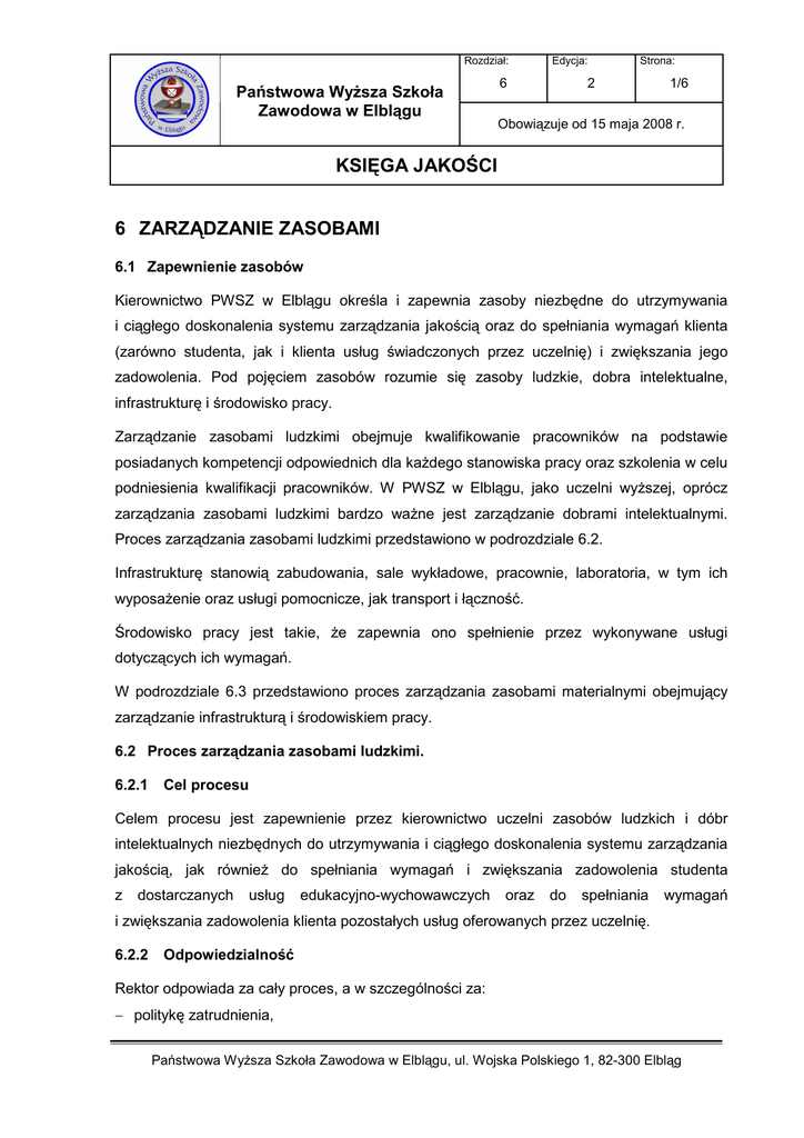 księga jakości 6 zarządzanie zasobami