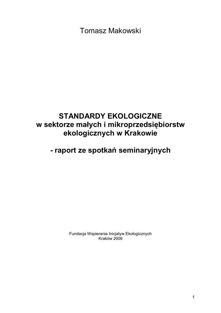 STANDARDY EKOLOGICZNE w sektorze małych i