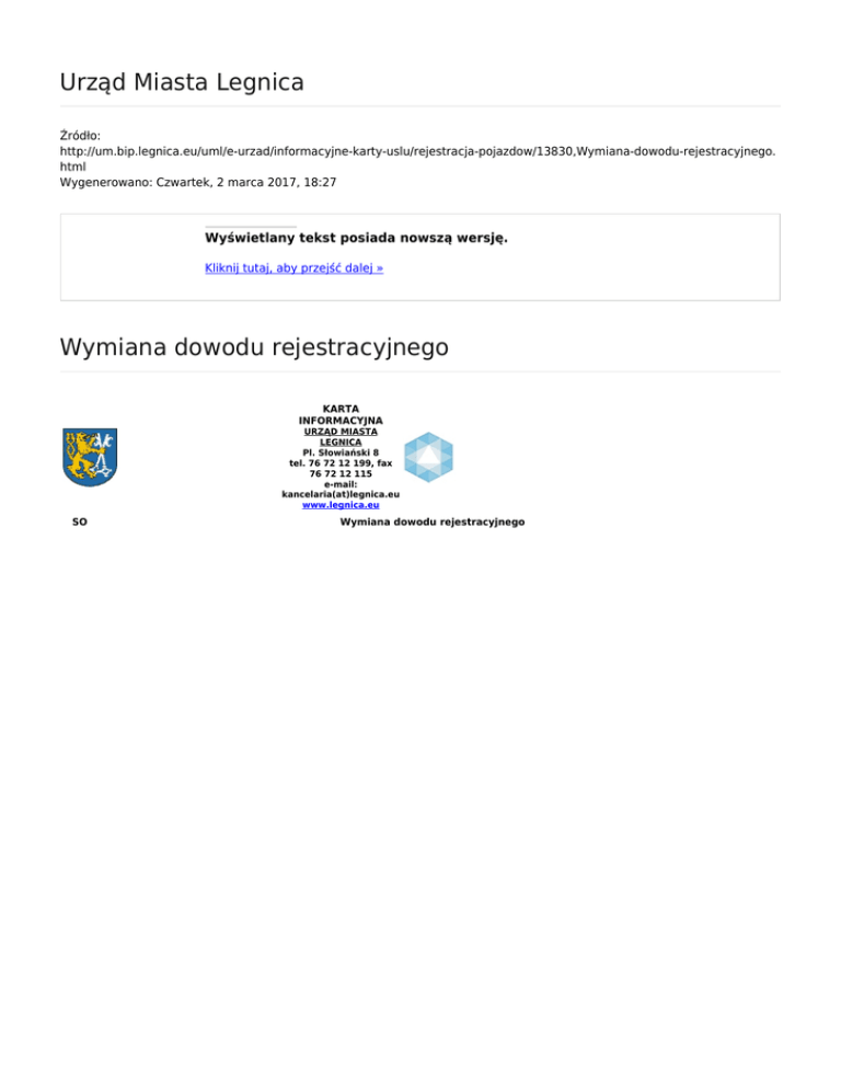 Urząd Miasta Legnica Wymiana dowodu rejestracyjnego