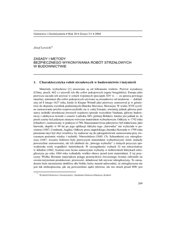 Górnictwo i Geoinżynieria • Rok 28 • Zeszyt 3/1 • 2004 Józef Lewicki* ZASADY I METODY BEZPIECZNEGO WYKONYWANIA ROBÓT STRZAŁOWYCH W BUDOWNICTWIE 1. Charakterystyka robót strzałowych w budownictwie i inżynierii Materiały wybuchowe [1] stosowane są od kilkunastu wieków. Pierwsi wynalazcy (Chiny, proch, 662 r.) używali ich dla celów pokojowych (ognie bengalskie); Europa jako pierwsza zaczęła ich używać w celach wojennych (początek XIV w. — za sprawą pewnego mnicha), natomiast dla celów pokojowych używane są stosunkowo od niedawna — dokładniej od 8 lutego 1627 roku, kiedy to Kaspar Weindl jako pierwszy zastosował je w górnictwie do drążenia wyrobisk podziemnych (Banska Stiavnica, Słowacja). W wieku XVII cywilne zastosowanie prochu rozpowszechniło się w całej Europie, niemniej jednak główne podstawy techniki strzelniczej stworzyli wojskowi (przede wszystkim Vaubaun, główny budowniczy i zdobywca twierdz z czasów Ludwika XIV, później Belidor). Istotne jest jednak to, że proch czarny był jedynym znanym wówczas materiałem wybuchowym. Odkryty w 1742 roku (Glauber) i zastosowany w praktyce (1788, Haussmann) kwas pikrynowy był traktowany jako barwnik, dopóki w 99 lat po jego aplikacji fabryka tego „barwnika” nie wyleciała w powietrze (1887, Cornbook, Anglia). Odkryty przez angielskiego chemika Howarda w 1799 roku piorunian rtęci był zbyt wrażliwy, by nadawać się do jakiegokolwiek zastosowania przy ówczesnym poziomie wiedzy i techniki. Nitroceluloza (1845, Ch. Schoenbein) czy nitrogliceryna (1847, Ascanio Sobrero) były pierwszymi materiałami wybuchowymi, które znalazły powszechne zastosowanie, ale ich zdolność do „łatwego wybuchu” z różnych przyczyn spowodowała wiele wypadków śmiertelnych. W szczególności wybuch 32 ton nitrocelulozy w składzie (1862, Austria) oraz liczne samoczynne wybuchy w noblowskich fabrykach nitrogliceryny po roku 1864 roku wzbudziły wielkie obawy przed tymi materiałami. Z tej przyczyny Wielka Brytania (największa potęga przemysłowa ówczesnego świata) zabroniła na swoim terytorium produkować, przewozić, składować lub używać nitrogliceryny. To zarządzenie było niezmiernie dotkliwe dla Nobla, który musiał udowodnić, że nitrogliceryna nie jest tak niebezpieczna, jak się powszechnie sądzi (dziwne, ale ten strach przed MW jest * Wydział Górnictwa i Geoinżynierii, Akademia Górniczo-Hutnicza, Kraków 269 obecnie jeszcze większy niż kiedyś; wystarczy porównać regulacje prawne sprzed kilkudziesięciu lat i współczesne!) — ale dzięki własnej odwadze obronił nitroglicerynę, co więcej, udało mu się przypadkowo pomieszać ją z ziemią okrzemkową. Niezależnie od tych zdarzeń w tym czasie nastąpiło kilka odkryć: — mieszanie nitrogliceryny z opiłkami drzewnymi w celu stworzenia plastycznej masy zdolnej do wybuchu (Zinin, Pietruszewski, 1851–1853, produkcja 2 ton tej mieszaniny i próby poligonowe); — ulepszenie spłonki Andriejewskiego przez Nobla; zamiana prochu na piorunian rtęci, łuski drewnianej na miedzianą (po roku 1865); — odkrycie przez Nobla mieszaniny nitrogliceryny z ziemią okrzemkową i nadanie jej nazwy „dynamit” (Nobel, 1866); — odkrycie żelatyny wybuchowej i tworzenie dynamitów żelatynowanych (Nobel 1875/76), masowa produkcja dynamitów żelatynowanych. Wszystkie te zdarzenia sprawiły, że w tym okresie XIX w. (niezależnie od ogólnego dynamicznego rozwoju chemii — znaczące ośrodki naukowe w Rosji, Niemczech, Francji, Anglii) istniały ogólnie dostępne, mocne i zróżnicowane materiały wybuchowe. Ponadto istniały środki do inicjowania tych materiałów (lont wolnopalny, spłonki) oraz pojawiały się (pod koniec wieku) nowe materiały wybuchowe inicjujące. Dalszy rozwój środków strzałowych szedł w następujących głównych kierunkach: — środki inicjacji (lonty detonujące, zapalniki elektryczne natychmiastowe i milisekundowe aż po system Nonel); — mieszaniny wybuchowe (dynamity, MW chloranowe, nadchloranowe, wapniowo-saletrzane, oksylikwity, dynamony, amonity, granulowane, zawiesinowe, emulsyjne); — MW bezpieczne (wetter-dynamity, MW zawierające sól kuchenną, MW wymienno-jonowe, a obecnie MW metanowe). W chwili obecnej materiały wybuchowe używane są głównie w technice wojskowej i w górnictwie, gdzie rozpoznanie ich możliwości jest największe. O ile w wojsku badania idą w kierunku konstruowania coraz doskonalszych ładunków i tworzenia systemów wybuchowych o skrajnie wysokich parametrach ciśnienia, temperatury i prędkości pewnych procesów, o tyle w technice górniczej [2] (zarówno podziemnej, jak i odkrywkowej) badania zmierzają w kierunku poprawy bezpieczeństwa i poręczności ich stosowania oraz największej ekonomicznej efektywności. Tak więc zarówno w technice wojskowej, jak i w górnictwie badania związane z materiałami wybuchowymi prowadzono w kierunkach dla tych branż najistotniejszych. Niejako na uboczu tych dwóch wielkich zastosowań, materiały wybuchowe stosowane są również w innych działach gospodarki. W szczególnych przypadkach materiały wybuchowe mogą być stosowane [3] do: — gaszenia szybów naftowych; — gaszenia lasów i stepów; — utwardzania powierzchni metali; 270 — — — — — — — — — — — — — — tłoczenia wybuchowego; utwardzania powierzchni gruntów oraz nasypów i obwałowań; osuszania bagien; karczowania drzew i pni; kruszenia lodu; czyszczenia elementów stalowych z osadów, glonów lub rdzy; udrażniania perforowanych rur w studniach; perforacji rur w wiertnictwie i górnictwie otworowym; strzelań torpedowych w wiertnictwie; cięcia metali; wykonywania wykopów podwodnych; strzelania na zrzut i wyrzut (drogi i tamy); strzelań dla celów geosejsmicznych; strzelań wyburzeniowych. Strzelania wyburzeniowe [3] obejmują bardzo szeroki i różnorodny zakres zastosowań różniących się zasadniczo pomiędzy sobą. D