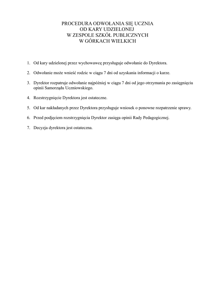 Procedura odwolania - Zespół Szkół Publicznych w Górkach Wielkich