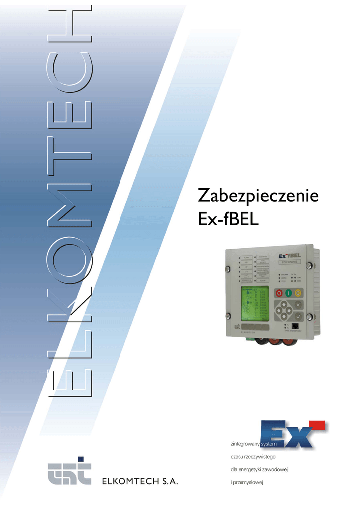 Zabezpieczenie Ex-fBEL Zabezpieczenie Ex-fBEL - Przeznaczenie Ex-fBEL jest uniwersalnym zabezpieczeniem i/lub terminalem pola rozdzielni średniego napięcia. \pod względem ilości wejść i wyjść sygnalizacyjnych i pomiarowych jest odpowiednikiem dotychczas oferowanego zabezpieczenia Ex-BEL_Z2U. Ale w odróżnieniu od niego jest to urządzenie nowocześniejsze, posiadające zdecydowanie większą moc obliczeniową, realizujące złożone algorytmy zabezpieczeniowe. Sterownik może również zabezpieczeń strony 110 kV. realizować funkcje - wysyłanie pomiarów prądów, napięć, mocy, energii, częstotliwości także w trybie spontanicznym, zdalne odblokowanie i blokowanie zabezpieczeń i automatyk, funkcja sterownika nadrzędnego dla urządzeń połączonych do drugiego kanału łączności. niektórych Urządzenie może pracować w polach rozdzielni SN: - zasilającym, - odpływowym, - łącznika szyn, - pomiarowym, - transformatora potrzeb własnych / uziemiającego, - baterii kondensatorów, - silnikowym, - elektrowni wiatrowej, - transformatora mocy – strona 110 kV. Wszystkie funkcje urządzenia, zarówno związane z automatyką zabezpieczeniową, jak i telemechaniczne podlegają programowej konfiguracji i mogą być łatwo dostosowane do potrzeb użytkownika. Funkcje zabezpieczeniowe Podstawowe funkcje zabezpieczeniowe występujące w konfiguracji domyślnej (zależnej od typu pola): - czterostopniowe zabezpieczenie nadprądowe, - zabezpieczenie nadprądowe zależne na prądach fazowych, - dwustopniowe zabezpieczenie nadprądowe ziemnozwarciowe, - zabezpieczenie nadprądowe ziemnozwarciowe zależne, - zabezpieczenie ziemnozwarciowe kierunkowe, - zabezpieczenia ziemnozwarciowe admitancyjne, konduktancyjne i susceptancyjne, - zabezpieczenie nadprądowe kierunkowe na prądach fazowych, - blokada zabezpieczenia nadprądowego fazowego od drugiej harmonicznej, - zabezpieczenie nad- i podnapięciowe, - zabezpieczenie nadnapięciowe ziemnozwarciowe, - zabezpieczenia od tempa zmian częstotliwości (df/dt, ∆f/∆t), - zabezpieczenia od tempa zmiana napięcia (dU/dt, ∆U/∆t), - zabezpieczenie od współczynnika mocy, - automatyka LRW, - automatyka SPZ, - automatyka SCO i SPZ po SCO, - automatyka ZSZ, - automatyka baterii kondensatorów, - automatyki transformatora uziemiającego, - zabezpieczenia silnikowe – model cieplny, zabezpieczenia od asymetrii, wielokrotnych rozruchów, - zabezpieczenie kierunkowo mocowe, - sygnalizacja: Alarm, AW i UP, - 2 kontrole ciągłości obwodu na wyłączanie. Występowanie poszczególnych funkcji oraz liczba progów danego zabezpieczenia zależy od konfiguracji urządzenia. Funkcje telemechaniczne - zdalne sterowanie łącznikiem wyposażonym w napęd, - wysyłanie w trybie zdarzeniowym zmiany stanu łączników Ex-fBEL w obudowie zatablicowej Funkcje dodatkowe - Moduł automatyk programowalnych, - Programowalne sekwencje, - Moduł programowalnej logiki kombinacyjnej, - Rejestrator zakłóceń, - Rejestrator przebiegów wolnozmiennych, - Długookresowy rejestrator zdarzeń o pojemności wielu tysięcy rekordów. Budowa – konfiguracja modułów peryferyjnych Urządzenie jest sterownikiem mikroprocesorowym o budowie modułowej. Składa się z trzech modułów: MPU (płyty procesora), CMB (modułu wejść i wyjść binarnych), TRF (moduł pomiarów zmiennoprądowych) lub 8U (moduł pomiarów napięciowych). Obudowa sterownika jest wykonana z profilu aluminiowego. Sterownik jest produkowany w dwóch wersjach: do montażu natablicowego i zatablicowego. Obie wersje są identyczne, jeśli chodzi o typy złączy i numerację zacisków. Przykładowy schemat blokowy zabezpieczenia Ex-fBEL z pakietem TRF Moduł CMB zawiera 20 izolowanych wejść kluczowanych podzielonych na sekcje po 4 wejścia oraz 3 izolowane wejścia statyczne podzielone na sekcje 2-1. Ponadto moduł ten obsługuje 12 wyjść binarnych (2 z kontrolą ciągłości obwodu) oraz 2 wyjścia typu opto-mosfet. Moduł TRF umożliwia pomiar 3 prądów fazowych, prądu I0, 3 napięć oraz napięcia U0. Moduł 8U umożliwia pomiar 8 napięć. Pulpit operatora W urządzeniu zastosowano wyświetlacz graficzny (zgodność ze standardem SVG) o rozmiarze 128 x 128 pikseli, który może pracować zarówno w trybie tekstowym, jak i graficznym. Zapewnia on wysoką jakość prezentacji danych przedstawianych za pomocą nielimitowanej ilości i rodzaju symboli graficznych. Projekt ekranu BEL oraz powiązań telemechaniki może być wygenerowany z danych sytemu dyspozytorskiego. Oprócz ekranu użytkownik dysponuje 12-oma dwukolorowymi diodami sygnalizacyjnymi, za pomocą których można pokazać stan pobudzenia zabezpieczeń, zadziałania, stan łączności, stan rejestratora, stany blokad, stany automatyk itp. Diody mogą świecić światłem ciągłym lub migającym. Sygnały świetlne mogą być z podtrzymaniem (do momentu skasowania) lub bez podtrzymania. Realizacja wielowątkowych automatyk programowalnych Urządzenie może być wyposażone w programowy moduł interpretera automatyk, który pozwala na samodzielne projektowanie algorytmów. Automatykę tworzy się w postaci schematów drabinkowych. Informacją wejściową dla algorytmu mogą być stany wejść, pomiary, wewnętrzne stany zabezpieczenia, liczniki wewnętrzne. Efektem działania algorytmu może być pobudzenie wyjścia sterowniczego, zmiana stanu wewnętrznego, wyzwolenie licznika, wyświetlenie komunikatu na ekranie. Sekwencje programowalne Użytkownik może wyedytować w konfiguracji urządzenia sekwencję składającą się kolejnych kroków. W każdym kroku można zaprogramować wykonanie sterowania, ustawienie stanu wewnętrznego, zapalenie diody sygnalizacyjnej na pulpicie. Wykonanie danego kroku może być uzależnione od warunku logicznego. Można także wprowadzić czas oczekiwania na spełnienie warunku w danym kroku. Moduł sekwencji może korzystać z modułu logiki kombinacyjnej. Sekwencje mogą być wyzwalane zdalnie, l