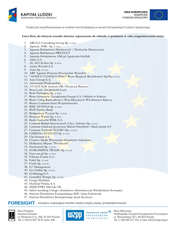 Lista firm, do których zostało złożone zaproszenie do udziału w