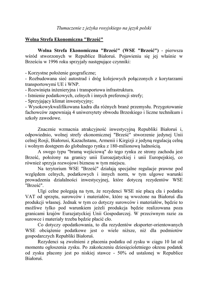 Informacje na temat Wolnej Strefy Ekonomicznej Brześć