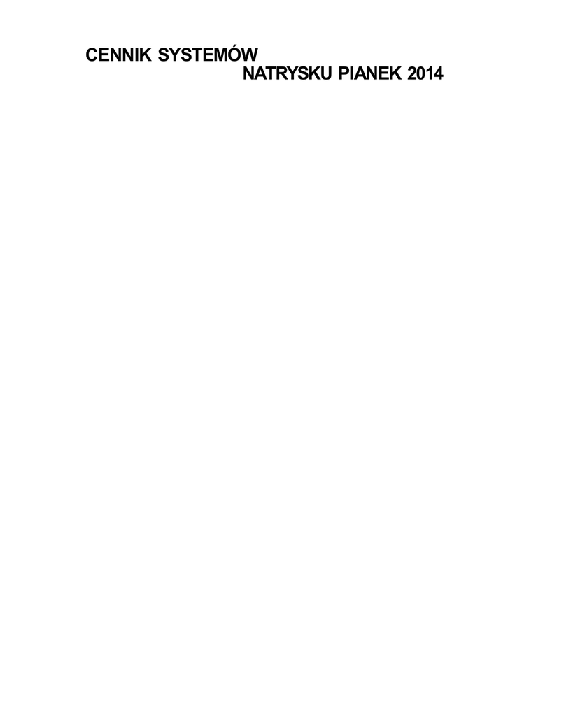 CENNIK SYSTEMÓW NATRYSKU PIANEK 2014
