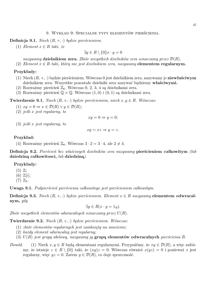9. Wykład 9: Specjalne typy elementów pierścienia. Definicja 9.1
