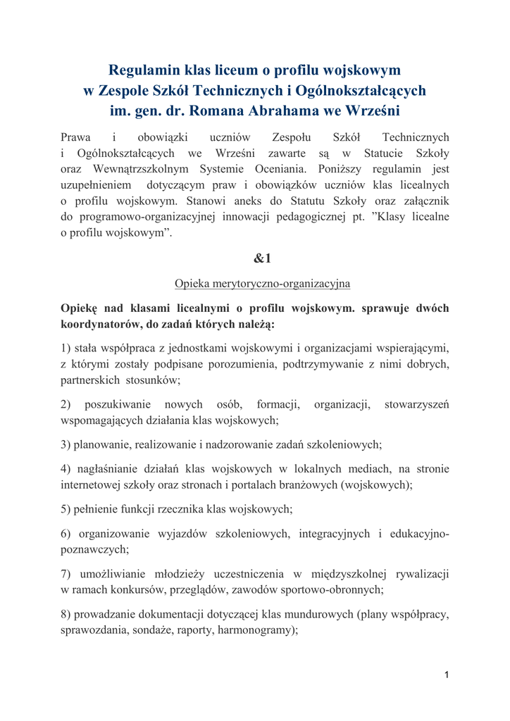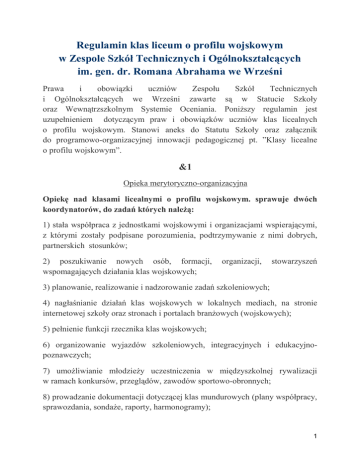 regulamin klas wojskowych - Witamy w ZSTIO we Wrześni