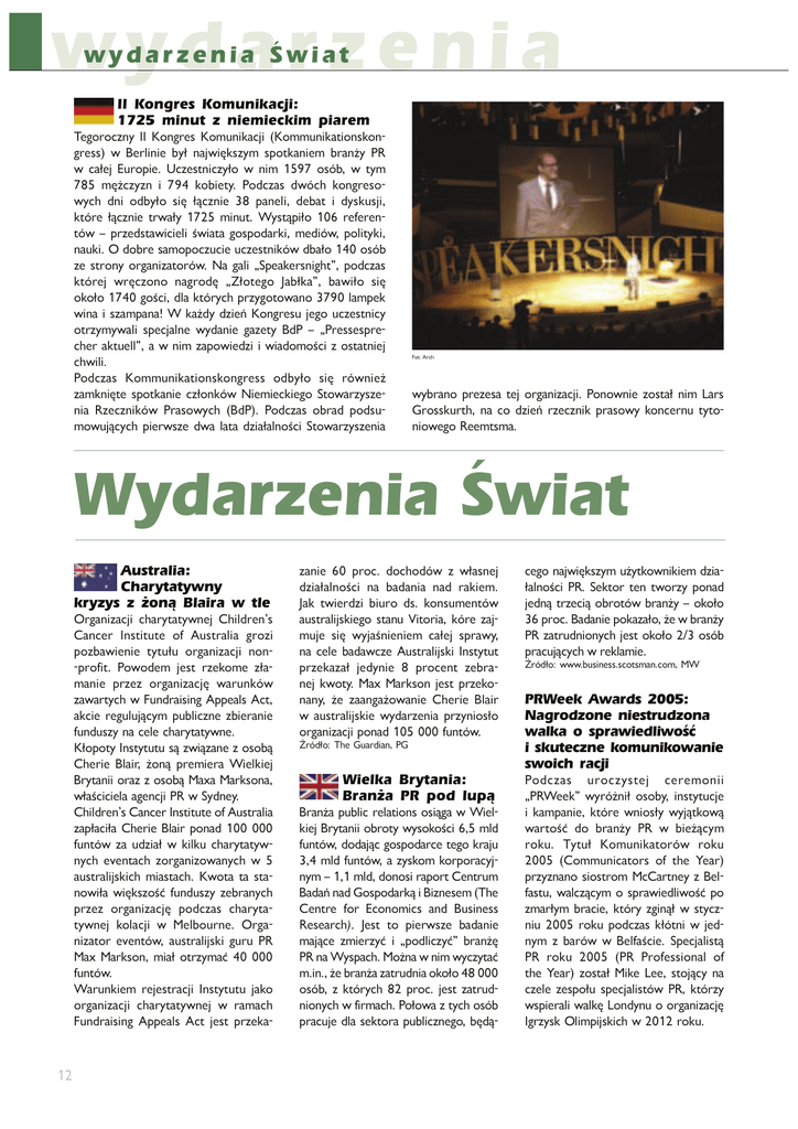 wydarzenia wydarzenia Œwiat II Kongres Komunikacji: 1725 minut z niemieckim piarem ?PRZ]ZNeYd 44 6ZYR]P^ 6ZX`YTVLNUT 6ZXX`YTVL_TZY^VZY R]P^^ b -P]WTYTP Mdč YLUbTíV^edX ^[Z_VLYTPX M]LYŇd ;= b NLčPU 0`]Z[TP @NeP^_YTNedčZ b YTX $" Z^ÇM b _dX "# XíŇNedeY T "$ VZMTP_d ;ZONeL^ ObÇNS VZYR]P^Z bdNS OYT ZOMdčZ ^Tí čÙNeYTP # [LYPWT OPML_ T Od^V`^UT V_Ç]P čÙNeYTP _]bLčd " XTY`_ Bd^_Ù[TčZ ! ]PQP]PY _Çb w []ePO^_LbTNTPWT ĦbTL_L RZ^[ZOL]VT XPOTÇb [ZWT_dVT YL`VT:OZM]P^LXZ[ZNe`NTP`NeP^_YTVÇbOMLčZZ^ÇM eP ^_]ZYd Z]RLYTeL_Z]Çb 9L RLWT k>[PLVP]^YTRS_u [ZONeL^ V_Ç]PU b]íNeZYZ YLR]ZOí kEčZ_PRZ 5LMčVLu MLbTčZ ^Tí ZVZčZ " RZĦNT OWL V_Ç]dNS []edRZ_ZbLYZ "$ WLX[PV bTYL T ^eLX[LYL B VLŇOd OeTPď 6ZYR]P^` UPRZ `NeP^_YTNd Z_]edXdbLWT ^[PNULWYP bdOLYTP RLeP_d -O; w k;]P^^P^[]P NSP] LV_`PWWu L b YTX eL[ZbTPOeT T bTLOZXZĦNT e Z^_L_YTPU NSbTWT ;ZONeL^ 6ZXX`YTVL_TZY^VZYR]P^^ ZOMdčZ ^Tí ]ÇbYTPŇ eLXVYTí_P ^[Z_VLYTP NečZYVÇb 9TPXTPNVTPRZ >_ZbL]ed^eP YTL =ePNeYTVÇb ;]L^ZbdNS -O; ;ZONeL^ ZM]LO [ZO^` XZb`UÙNdNS [TP]b^eP ObL WL_L OeTLčLWYZĦNT >_ZbL]ed^ePYTL 1Z_%,]NS bdM]LYZ []PeP^L _PU Z]RLYTeLNUT ;ZYZbYTP eZ^_Lč YTX 7L]^ 2]Z^^V`]_S YL NZ OeTPď ]ePNeYTV []L^Zbd VZYNP]Y` _d_Z YTZbPRZ=PPX_^XL Wydarzenia Œwiat Australia: Charytatywny kryzys z żoną Blaira w tle :]RLYTeLNUT NSL]d_L_dbYPU .STWO]PYv^ .LYNP] 4Y^_T_`_P ZQ ,`^_]LWTL R]ZeT [ZeMLbTPYTP _d_`č` Z]RLYTeLNUT YZY []ZQT_ ;ZbZOPX UP^_ ]ePVZXP ečL XLYTP []ePe Z]RLYTeLNUí bL]`YVÇb eLbL]_dNS b 1`YO]LT^TYR ,[[PLW^ ,N_ LVNTP ]PR`W`UÙNdX [`MWTNeYP eMTP]LYTP Q`YO`^ed YLNPWP NSL]d_L_dbYP 6čZ[Z_d4Y^_d_`_`^ÙebTÙeLYPeZ^ZMÙ .SP]TP -WLT] ŇZYÙ []PXTP]L BTPWVTPU -]d_LYTT Z]Le e Z^ZMÙ 8LcL 8L]V^ZYL bčLĦNTNTPWL LRPYNUT ;= b >dOYPd .STWO]PYv^.LYNP]4Y^_T_`_PZQ,`^_]LWTL eL[čLNTčL .SP]TP -WLT] [ZYLO Q`Y_Çb eL `OeTLč b VTWV` NSL]d_L_db YdNS PaPY_LNS eZ]RLYTeZbLYdNS b L`^_]LWTU^VTNS XTL^_LNS 6bZ_L _L ^_L YZbTčL bTíV^eZĦÛ Q`YO`^ed ePM]LYdNS []ePe Z]RLYTeLNUí [ZONeL^ NSL]d_L _dbYPU VZWLNUT b 8PWMZ`]YP :]RL YTeL_Z] PaPY_Çb L`^_]LWTU^VT R`]` ;= 8Lc 8L]V^ZY XTLč Z_]edXLÛ Q`Y_Çb BL]`YVTPX ]PUP^_]LNUT 4Y^_d_`_` ULVZ Z]RLYTeLNUT NSL]d_L_dbYPU b ]LXLNS 1`YO]LT^TYR ,[[PLW^ ,N_ UP^_ []ePVL eLYTP ! []ZN OZNSZOÇb e bčL^YPU OeTLčLWYZĦNT YL MLOLYTL YLO ]LVTPX 5LV _bTP]OeT MT`]Z O^ VZY^`XPY_Çb L`^_]LWTU^VTPRZ ^_LY` AT_Z]TL VÇ]P eLU X`UP ^Tí bdULĦYTPYTPX NLčPU ^[]Lbd YL NPWP MLOLbNeP ,`^_]LWTU^VT 4Y^_d_`_ []ePVLeLč UPOdYTP # []ZNPY_ ePM]L YPU VbZ_d 8Lc 8L]V^ZY UP^_ []ePVZ YLYd ŇP eLLYRLŇZbLYTP .SP]TP -WLT] b L`^_]LWTU^VTP bdOL]ePYTL []edYTZ^čZ Z]RLYTeLNUT[ZYLO Q`Y_Çb ń]ÇOčZ% ?SP 2`L]OTLY ;2 Wielka Brytania: Branża PR pod lupą -]LYŇL [`MWTN ]PWL_TZY^ Z^TÙRL b BTPW VTPU-]d_LYTTZM]Z_dbd^ZVZĦNT! XWO Q`Y_ÇbOZOLUÙNRZ^[ZOL]NP_PRZV]LU` XWO Q`Y_Çb L ed^VZX VZ][Z]LNdU YdXwXWOOZYZ^T]L[Z]_.PY_]`X -LOLďYLO2Z^[ZOL]VÙT-TeYP^PX?SP .PY_]P QZ] 0NZYZXTN^ LYO -`^TYP^^ =P^PL]NS 5P^_ _Z [TP]b^eP MLOLYTP XLUÙNP eXTP]edÛ T k[ZOWTNedÛu M]LYŇí ;=YLBd^[LNS8ZŇYLbYTXbdNed_LÛ XTYŇPM]LYŇLeL_]`OYTLZVZčZ# Z^ÇM e V_Ç]dNS # []ZN UP^_ eL_]`O YTZYdNSbQT]XLNS;ZčZbLe_dNSZ^ÇM []LN`UP OWL ^PV_Z]L [`MWTNeYPRZ MíOÙ NPRZYLUbTíV^edX`Ňd_VZbYTVTPXOeTL čLWYZĦNT ;= >PV_Z] _PY _bZ]ed [ZYLO UPOYÙ _]ePNTÙ ZM]Z_Çb M]LYŇd w ZVZčZ ![]ZN-LOLYTP[ZVLeLčZŇPbM]LYŇd ;= eL_]`OYTZYdNS UP^_ ZVZčZ Z^ÇM []LN`UÙNdNSb]PVWLXTP ń]ÇOčZ% bbbM`^TYP^^^NZ_^XLYNZX 8B PRWeek Awards 2005: Nagrodzone niestrudzona walka o sprawiedliwość i skuteczne komunikowanie swoich racji ;ZONeL^ `]ZNed^_PU NP]PXZYTT k;=BPPVu bd]ÇŇYTč Z^ZMd TY^_d_`NUP T VLX[LYTP V_Ç]P bYTZ^čd bdUÙ_VZbÙ bL]_ZĦÛ OZ M]LYŇd ;= b MTPŇÙNdX ]ZV` ?d_`č 6ZX`YTVL_Z]Çb ]ZV` .ZXX`YTNL_Z]^ ZQ _SP DPL] []edeYLYZ ^TZ^_]ZX 8N.L]_YPd e -PW QL^_` bLWNeÙNdX Z ^[]LbTPOWTbZĦÛ [Z eXL]čdX M]LNTP V_Ç]d eRTYÙč b ^_dNe YT` ]ZV` [ZONeL^ VčÇ_YT b UPO YdX e ML]Çb b -PWQLĦNTP >[PNULWT^_Ù ;= ]ZV` ;= ;]ZQP^^TZYLW ZQ _SP DPL] eZ^_Lč 8TVP 7PP ^_ZUÙNd YL NePWP eP^[Zč` ^[PNULWT^_Çb ;= V_Ç]ed b^[TP]LWTbLWVí7ZYOdY`ZZ]RLYTeLNUí 4R]ed^V:WTX[TU^VTNSb ]ZV` wydarzenia Œwiat ?d_`čPX k6LX[LYTL ;= ]ZV` u .LX[LTRY ZQ_SPDPL]eZ^_LčLYLR]ZOeZYLebdNTí^VLML_L WTL ^_ZNeZYL []ePe Z[P]L_Z]L WTYTT VZWPUZbdNS 290= 2]PL_ 9Z]_S 0L^_ =LTWbLd Z VZWPUYÙ OeTP^TíNTZWP_YTÙ Q]LYNedeí WTYTT VZWPT YL B^NSZO YTX BdM]ePŇ` 9LUWP[^eÙ VLX[LYTÙ V]ded^ZbÙ ?SP-P^_4^^`P^LYO.]T^T^8LYLRPXPY_eZ^_LčL YLebLYLVLX[LYTL^TPNT]P^_L`]LNUT8N/ZYLWOv^w k0Y^`]TYRL-LWLYNPO/PML_PuMíOÙNLZO[ZbTP OeTÙYLQTWXk>`[P]>TeP8Pu 9LR]ZOL UP^_ []edeYLbLYL []ePe R]ZYZ WTNeÙNP [ZYLO ^PYTZ] ^[PNULWT^_Çb ;= VTP]ZbLYP []ePe >TXZY 7PbT^ Od]PV_Z]L O^ NZ][Z]L_P LQQLT]^ b QT]XTP AZOLQZYP ?PRZ]ZNeYL `]ZNed ^_ZĦÛ;=BPPV,bL]O^eR]ZXLOeTčL[ZYLO ^[PNULWT^_Çb ;= USA: Pentagon zapłaci kolejne miliony dolarów za komunikowanie w Iraku 9LedbLYL k_LUPXYTNeÙu QT]XL ;= =PYOZY 2]Z`[ V_Ç]L [ZXLRLčL LXP ]dVLď^VTPX` ]eÙOZbT []ed NZ YLUXYTPU " TY_P]bPYNULNS bZU^VZbdNS `XLNYTL ^bZUÙ b^[Çč[]LNí e ;PY_LRZYPX ELbL]čL ZYL bL]_ ! XTWTZ YÇb OZWL]Çb VZY_]LV_ e L]XTÙ LXP]dVLď^VÙ YL b^[L]NTP ^_]L_PRTNeYPRZ VZX`YTVZbLYTLb-LROLOeTP5P^eNePbVbTP_YT`_PRZ]ZV`:v/bdP]v^;= /LTWd OZYZ^Tč ŇP =PYOZY ZM^č`R`UP bL]_ # XTWTZYL OZWL]Çb VZY_]LV_ [ZO[T^LYd e /ZbÇOe_bPX >_]L_PRTNeYdX ;PY_LRZY` B ]LXLNS YTPRZ QT]XL ZO[ZbTLOLčL eL LYLWTed XPOTÇb eLR]LYTNeYdNS []ePe XTP^TíNd bdVZ]ed^_`UÙNO`ŇdMZWTNeÙNdLŇ !Z^ÇMeP^[ÇčZO[ZbTPOeTLWYdeL[]Z UPV_;ZYLO_Zb=PYOZY2]Z`[XTLčLZ_]edXLÛZO.4,MWT^VZ XTWTZYÇb OZWL]Çb eL ^bZUÙ []LNí bdVZYLYÙ b 4]LV` ZMPUX`UÙNÙ ZV]P^ WL_ [Z bZUYTP b EL_ZNP 5POYdX e bdVZYLYdNS b _dX ZV]P^TP OeTLčLď MdčZ[ZbZčLYTP 4]LNVTPRZ6ZYR]P^`9L]ZOZbPRZ ń]ÇOčZ%>[TYBL_NS 6Č ń]ÇOčZ% ;=BPPV 6; International Hall of Fame: ICCO nagradza autorytety w branży 4..:bdM]LčZ[TíNT`WTOP]ÇbM]LYŇd;=V_Ç]ed OZčÙNedWT OZ 4Y_P]YL_TZYLW 3LWW ZQ 1LXP :^ZMd `SZYZ]ZbLYP NečZYVZ^_bPX% w /LYTPW 0OPWXLY e @>, w eLčZŇdNTPW T []PeP^ LRPYNUT 0OPWXLY w 5ZSY / 2]LSLX e @>, w []PeP^ T Od]PV_Z] bdVZYLbNed LRPYNUT 1WPT^SXLY3TWWL]O w ;L`W 6ZS_P^ e 9TPXTPN w eLčZŇdNTPW LRPY