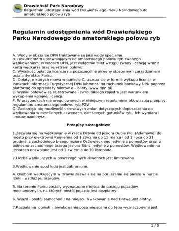 Regulamin udostępnienia wód Drawieńskiego Parku Narodowego