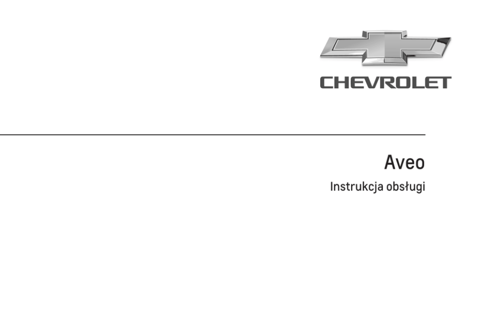 Aveo Instrukcja obsługi Spis treści Wprowadzenie ............................... 2 W skrócie ....................................... 6 Kluczyki, drzwi i szyby ................. 19 Fotele, elementy bezpieczeństwa ........................... 36 Schowki ....................................... 61 Wskaźniki i przyrządy .................. 68 Oświetlenie .................................. 98 System audio-nawigacyjny ........ 105 Ogrzewanie, wentylacja i klimatyzacja ............................... 166 Prowadzenie i użytkowanie ....... 176 Pielęgnacja samochodu ............. 204 Serwisowanie samochodu ......... 266 Dane techniczne ........................ 277 Informacje dla klienta ................. 288 Indeks ........................................ 290 2 Wprowadzenie Wprowadzenie Wprowadzenie Wprowadzenie Niniejszy samochód stanowi połączenie rozwiązań konstrukcyjnych, zaawansowanych technologii i bezpieczeństwa, ponadto jest przyjazny środowisku naturalnemu i ekonomiczny w użyciu. Ta Instrukcja obsługi zapewnia użytkownikowi wszystkie informacje, jakie są potrzebne, by prowadzić samochód bezpiecznie i wydajnie. Również pasażerowie powinni być świadomi zagrożeń związanych z nieprawidłową eksploatacją. Kierowca musi zawsze postępować zgodnie z przepisami prawa kraju, w którym obecnie się znajduje. Przepisy te mogą odbiegać od informacji zawartych w tej instrukcji obsługi. Słowo „warsztat” używane w niniejszej publikacji oznacza autoryzowaną stację obsługi Chevrolet. Wszystkie autoryzowane stacje obsługi Chevrolet oferują najwyższy poziom usług po konkurencyjnych cenach. Doświadczeni i przeszkoleni przez firmę Chevrolet technicy pracują zgodnie ze specjalnymi instrukcjami serwisowymi. Dokumentacja dostarczona wraz z samochodem powinna zawsze być przechowywana w jego wnętrzu, tak aby była łatwo dostępna. Korzystanie z instrukcji obsługi ■ W niniejszej instrukcji uwzględniono wszystkie opcje oraz elementy wyposażenia dostępne dla tego modelu. Niektóre opisy, włączając w to ilustracje wyświetlanych ekranów oraz funkcje menu, mogą nie odnosić się do używanego pojazdu ze względu na występowanie różnych wariantów, wersji dostępnych w wybranych krajach, wyposażenia specjalnego oraz akcesoriów. ■ Rozdział „W skrócie” zawiera przegląd najważniejszych funkcji samochodu. 3 ■ Spis treści znajdujący się na początku podręcznika oraz w każdym rozdziale ułatwia zlokalizowanie szukanych informacji. ■ Indeks umożliwia odnalezienie wszystkich wystąpień szukanej informacji w całej instrukcji obsługi. ■ W Instrukcji obsługi wykorzystano fabryczne oznaczenia silników. Odpowiadające im oznaczenia handlowe można znaleźć w rozdziale „Dane techniczne”. ■ Informacje dotyczące kierunku, np. w lewo lub w prawo bądź do przodu lub do tyłu, zawsze podawane są względem kierunku jazdy. ■ Wyświetlane ekrany mogą być niedostępne w języku polskim. 4 Wprowadzenie Oznaczenia Niebezpieczeństwo, Ostrzeżenie, Przestroga 9 Niebezpieczeństwo Akapity oznaczone słowem 9 Niebezpieczeństwo zawierają informacje o zagrożeniach wiążących się z ryzykiem śmierci. Zlekceważenie podanych informacji może doprowadzić do śmierci. 9 Ostrzeżenie Tekst oznaczony jako 9 Ostrzeżenie zawiera informacje o zagrożeniu wypadkiem lub obrażeniami ciała. Zlekceważenie podanych informacji może doprowadzić do odniesienia obrażeń. Przestroga Tekst oznaczony słowami Przestroga zawiera informacje o możliwości uszkodzenia samochodu. Zlekceważenie podanych informacji może doprowadzić do uszkodzenia samochodu. Życzymy szerokiej drogi! Chevrolet Wprowadzenie 5 6 W skrócie W skrócie Odblokowanie zamków samochodu Informacje dotyczące pierwszej jazdy Nadajnik zdalnego sterowania Nacisnąć przycisk c. Naciśnięcie powoduje odblokowanie wszystkich drzwi. Światła awaryjne migną dwukrotnie. Nadajnik zdalnego sterowania 3 19, centralny zamek 3 22. Regulacja foteli przednich Regulacja pozycji fotela Aby przesunąć fotel do przodu lub do tyłu, pociągnąć uchwyt i ustawić fotel w żądanym położeniu. Puścić uchwyt i sprawdzić, czy fotel został zablokowany w wybranym położeniu. Pozycja fotela 3 38, regulacja fotela 3 38. W skrócie Regulacja oparcia fotela Regulacja wysokości siedziska fotela 7 Regulacja wysokości zagłówków Regulacja wysokości Pociągnąć dźwignię, ustawić nachylenie i zwolnić dźwignię. Mechanizm fotela powinien się zatrzasnąć w wybranym położeniu. Podczas regulacji nie wywierać nacisku na oparcie fotela. Pozycja fotela 3 38, regulacja fotela 3 38. Pompować dźwignią znajdującą się z boku siedziska po zewnętrznej stronie, aż siedzisko znajdzie się na żądanej wysokości. Aby obniżyć siedzisko, nacisnąć dźwignię w dół kilka razy. Aby podwyższyć siedzisko, pociągnąć dźwignię w górę kilka razy. Pozycja fotela 3 38, regulacja fotela 3 38. Pociągnąć zagłówek w górę. W celu przesunięcia zagłówka w dół, wcisnąć blokadę (1) i docisnąć zagłówek. Zagłówki 3 36. 8 W skrócie Regulacja położenia poziomego Pasy bezpieczeństwa Regulacja lusterek Lusterko wewnętrzne Pociągnąć zagłówek do przodu. Można go ustawić w jednym z trzech położeń. Aby przesunąć zagłówek do tyłu, należy pociągnąć go do przodu. Przesunie się on wtedy automatycznie do tyłu. Wysunąć pas ze zwijacza, poprowadzić go przy ciele w taki sposób, aby nie był skręcony, i zatrzasnąć klamrę w zamku. Podczas jazdy należy regularnie napinać część biodrową pasa, ciągnąc za jego odcinek barkowy. Pozycja fotela 3 38, pasy bezpieczeństwa 3 40, poduszki powietrzne 3 44. W celu zmniejszenia intensywności światła odbijającego się w lusterku pociągnąć w dół dźwignię znajdującą się w dolnej części lusterka. Lusterko wewnętrzne 3 31. W skrócie Lusterka zewnętrzne Wybrać żądane lusterko zewnętrzne, obracając elemen