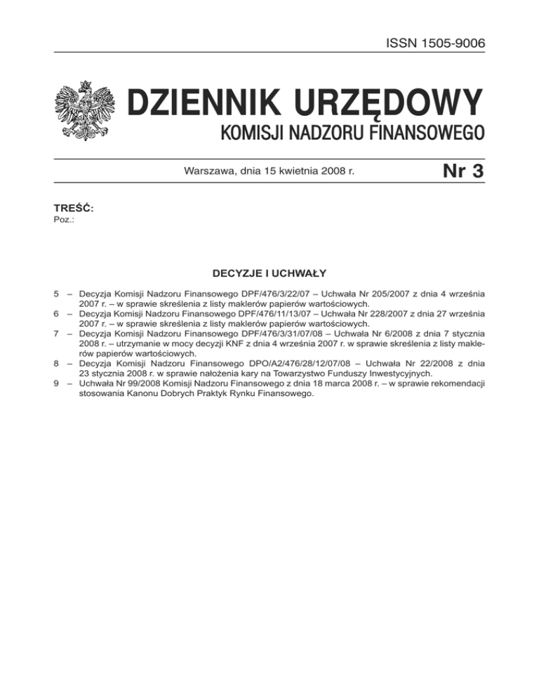 Dziennik Urzędowy Komisji Nadzoru Finansowego nr 3