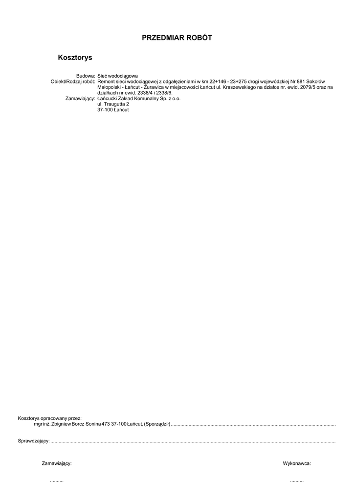 Kosztorys opracowany przez - Łańcucki Zakład Komunalny