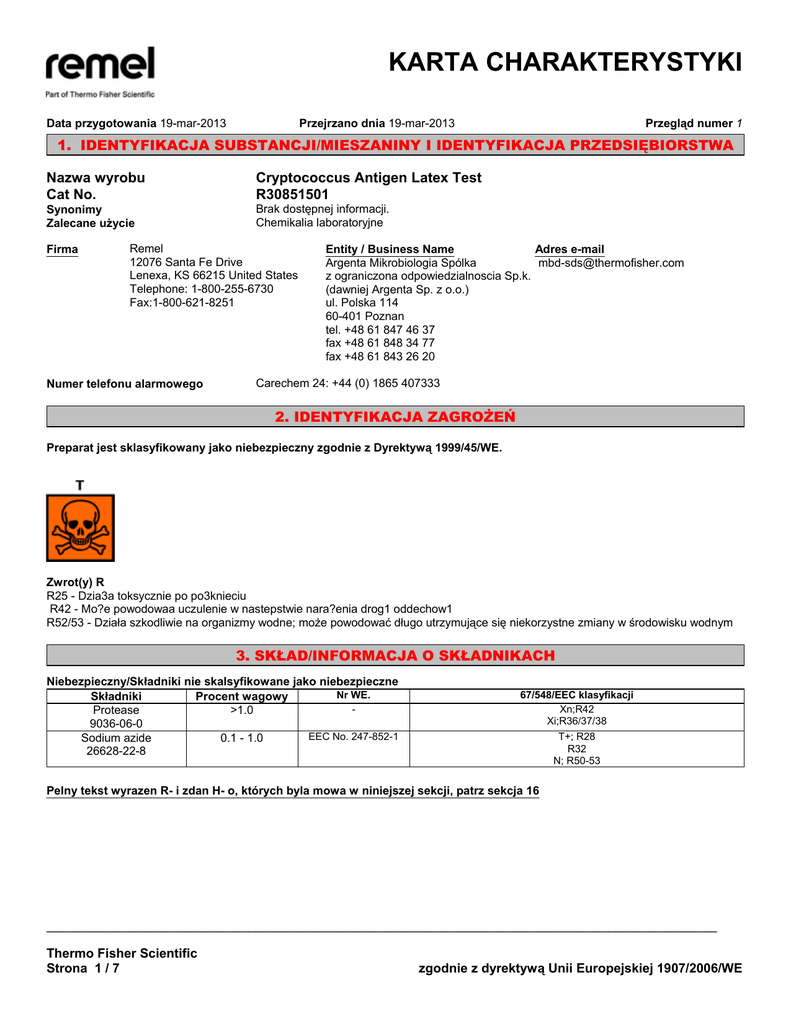 karta charakterystyki - Thermo Fisher Scientific