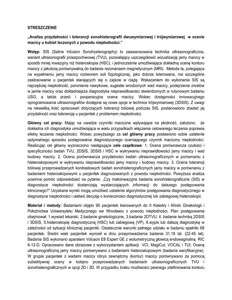 STRESZCZENIE „Analiza przydatności i tolerancji sonohisterografii