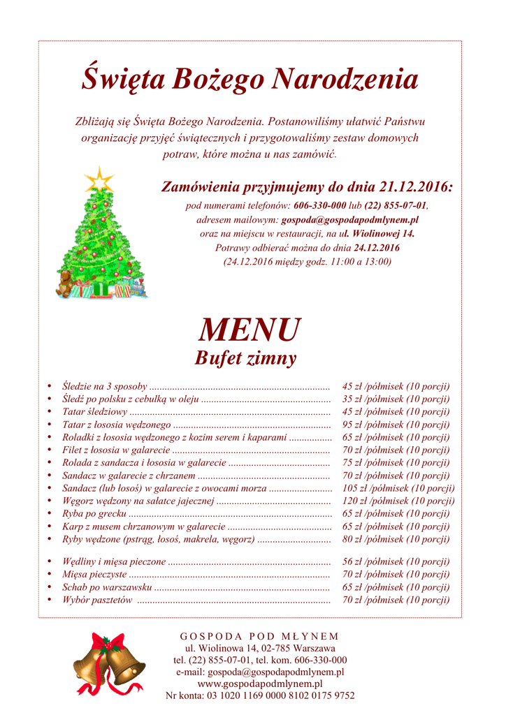Wigilia 2016 Potrawy na wynos Oferta do wydruku