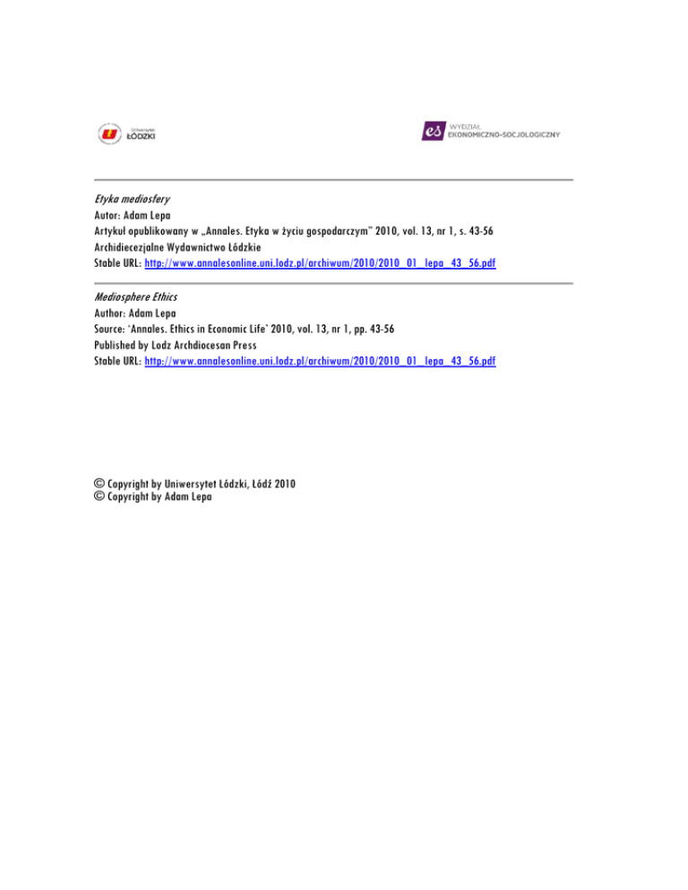 Full text (Polish) - Annales. Etyka w życiu gospodarczym