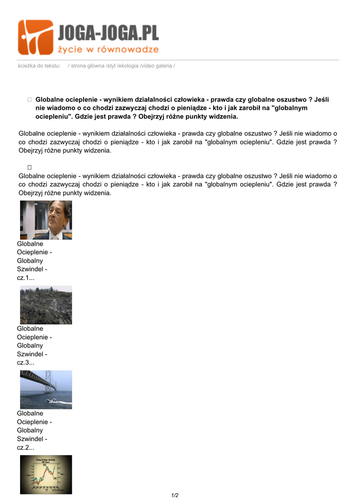 ścieżka do tekstu: / strona główna /styl /ekologia /video galeria / Globalne ocieplenie - wynikiem działalności człowieka - prawda czy globalne oszustwo ? Jeśli nie wiadomo o co chodzi zazwyczaj chodzi o pieniądze - kto i jak zarobił na "globalnym ociepleniu". Gdzie jest prawda ? Obejrzyj różne punkty widzenia. Globalne ocieplenie - wynikiem działalności człowieka - prawda czy globalne oszustwo ? Jeśli nie wiadomo o co chodzi zazwyczaj chodzi o pieniądze - kto i jak zarobił na "globalnym ociepleniu". Gdzie jest prawda ? Obejrzyj różne punkty widzenia. Globalne ocieplenie - wynikiem działalności człowieka - prawda czy globalne oszustwo ? Jeśli nie wiadomo o co chodzi zazwyczaj chodzi o pieniądze - kto i jak zarobił na "globalnym ociepleniu". Gdzie jest prawda ? Obejrzyj różne punkty widzenia. Globalne Ocieplenie Globalny Szwindel cz.1... Globalne Ocieplenie Globalny Szwindel cz.3... Globalne Ocieplenie Globalny Szwindel cz.2... 1/2 Globalne Ocieplenie Globalny Szwindel cz.4... Globalne ocieplenie wielkie oszustwo cz. 5... Globalne ocieplenie wielkie oszustwo cz.6... Globalne ocieplenie wielkie oszustwo cz.7... Globalne ocieplenie wielkie oszustwo cz. 8... Globalne ocieplenie, fragmenty filmu Niewygodna prawda- Al Gore ... Opublikuj na: data wydruku: czwartek, 2 marca 2017 roku 18:35:29 adres dokumentu: http://www.joga-joga.pl//index.php?LANG=pl&page_ID=150&kolekcja_ID=68&print=1 2/2