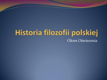 Okres Oświecenia Epoka Oświecenia w Europie Oświecenie, określane często jako wiek rozumu – nurt kulturalny oraz okres w historii Europy przypadający na lata 1688-1789. Istotą Oświecenia było, wg Kanta, hasło sapere aude! co można przetłumaczyć jako: "miej odwagę posługiwać się rozumem!". Ludzie oświecenia najbardziej cenili to, co można pojąć rozumem. PRYMAT ROZUMU NAD UCZUCIEM, WOLĄ, A TAKŻE RELIGIĄ!!! W Polsce idee oświecenia przyjęły się później niż w krajach Europy Zachodniej, co było związane z tym, że mieszczaństwo zyskało większe znaczenie dopiero w II poł. XVIII w Przyjmuje się, że ramy czasowe polskiego oświecenia obejmują okres od lat 40. XVIII wieku do roku 1822 Co się wydarzyło w Polsce w 1822? Specyfiką polskiego oświecenia był niespotykany gdzie indziej udział kleru katolickiego w tym ruchu. Pierwsze pokolenie ludzi oświecenia stanowili głównie duchowni, zaś w całokształcie epoki księża stanowili aż 40% spośród czołowych postaci Oświecenia w Polsce. Zjawisko to bywa nazywane oświeceniem katolickim. Rola Braci Polskich w Oświeceniu- deizm Nawiązanie kontaktu z Zachodem – ok. 1750. Oś. Angielskie (Locke, ale jako teoretyk wychowania) Oś. Francuskie (Kartezjusz, Monteskiusz, Wolter, encyklopedyści, fizjokraci) Newton Oś. Niemieckie (Wolff) Oświecenie Polskie Postacie polskiego Oświecenia Stanisław Konarski Hugo Kołłątaj Stanisław Staszic Ignacy Krasicki Reforma w szkolnictwie Stanisław Konarski postulował w szkolnictwie: nacisk na wiedzę praktyczną nauczanie przedmiotów przyrodniczych nauczanie języka narodowego odsunięcie na dalszy plan łaciny i retoryki odrzucenie pustej erudycji wprowadzenie zajęć manualnych i fizycznych postawę chrześcijańską duchowy rozwój ucznia Postulaty Kołłątaja Postulował: dziedziczność tronu zniesienie liberum veto ogólne opodatkowanie zmniejszenie wpływów magnaterii prawa dla mieszczan wolność dla chłopstwa (zamiana pańszczyzny na czynsz) Staszic dostrzega ratunek dla utrzymania państwowości Polski we wprowadzeniu despotyzmu, władzy silnej ręki. Ale podkreśla, że byłoby to rozwiązanie krótko okresowe. Większą szanse dla Polski widzi, w reformie w duchu oświeceniowego republikanizmu, który potrafiłby wyzwolić wszystkie siły twórcze narodu. Podstawą do udoskonalenia ustroju w Polsce, mającej kształt monarchii konstytucyjnej, ma być nowa koncepcja narodu. Zamiast "wyłącznictwa" magnackoszlacheckiego, typowego dla feudalizmu, postuluje system oparty na hegemonii szlachecko-mieszczańskiej. Hymn do miłości ojczyzny Święta miłości kochanej Ojczyzny, Czują cię tylko umysły poczciwe! Dla ciebie zjadłe smakują trucizny Dla ciebie więzy, pęta niezelżywe. Kształcisz kalectwo przez chwalebne blizny Gnieździsz w umyśle rozkosze prawdziwe, Byle cię można wspomóc, byle wspierać, Nie żal żyć w nędzy, nie żal i umierać. Wolności! Której dobra nie docieka, Gmin jarzma zwykły, nikczemny i podły; Cecho dusz wielkich, ozdobo człowieka. Strumieniu boski cnót zaszczycon źródły! Tyś tarczą twoich Polaków od wieka, Z Ciebie się pasmem szczęścia nasze wiodły. Większaś nad przemoc!- a kto Ciebie godny, Pokruszył jarzma, albo padł swobodny. (http://www.youtube.com/watch?v=dj7_4iFUHas • http://www.youtube.com/watch?v=pAwmzrcxRn8&feat ure=related)