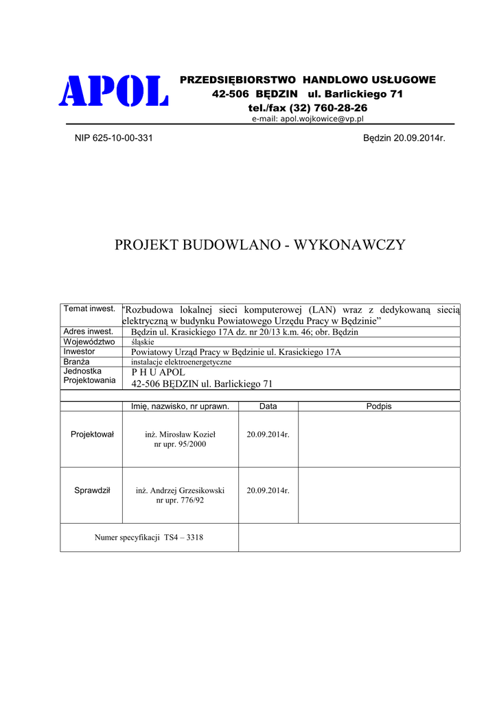 projekt budowlano - wykonawczy - Powiatowy Urząd Pracy w Będzinie