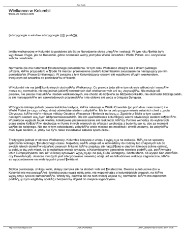 ¦wiêta wielkanocne w Kolumbii to podobnie jak Bo¿e Narodzenie okres urlopów i wakacji. W tym roku ¶wiêta by³y