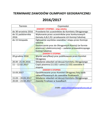 TERMINARZ ZAWODÓW OLIMPIADY GEOGRAFICZNEJ