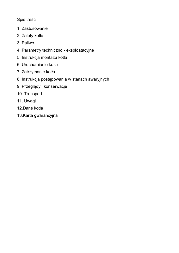 Spis treści: 1. Zastosowanie 2. Zalety kotła 3. Paliwo 4