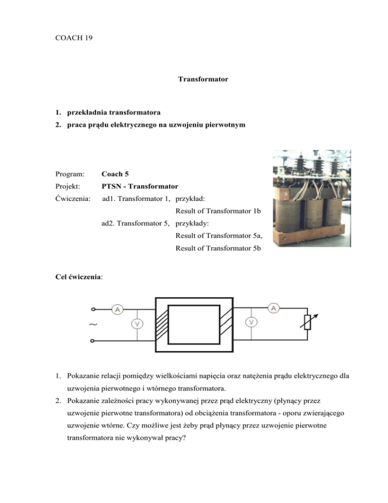 COACH 19 Transformator 1. przekładnia transformatora 2. praca pr