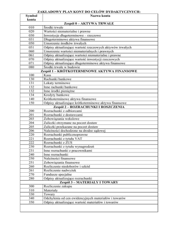ZAKŁADOWY PLAN KONT DO CELÓW DYDAKTYCZNYCH