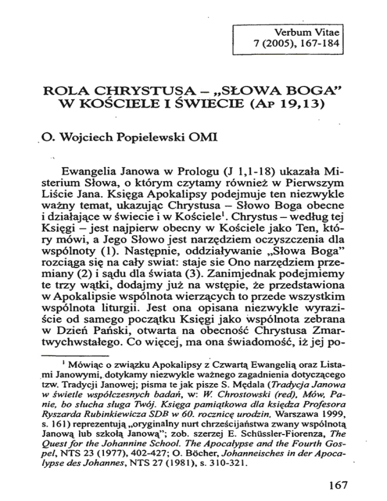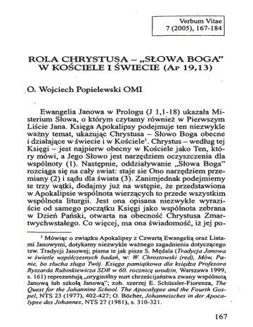 rola chrystusa- "słowa boga`` w kosciele i swiecie (ap 19,13)
