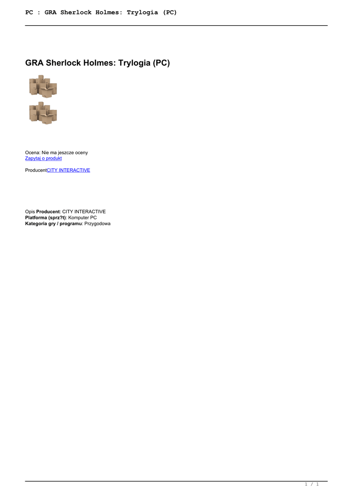 PC : GRA Sherlock Holmes: Trylogia (PC)