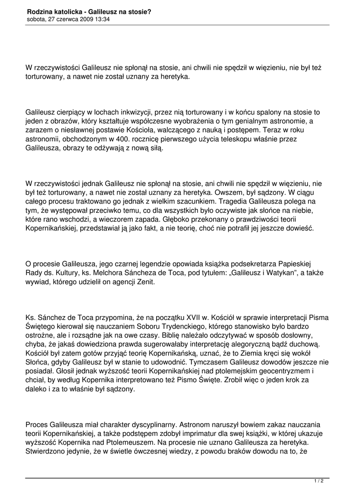 Rodzina katolicka - Galileusz na stosie?