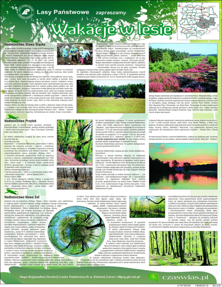 Nadleśnictwo Sława Śląska zarządza blisko 26 000 ha gruntów, z czego aż 97% zajmują lasy. Swój wyjątkowy charakter, zarówno pod względem przyrodniczym jak i turystycznym, nadleśnictwo zawdzięcza licznym jeziorom, z których największym jest Jezioro Sławskie zwane niegdyś Śląskim Morzem. Powierzchnia tegoż jeziora wynosi 854 ha, a maksymalna głębokość 12,3 m. Od 2007 roku Jezioro Sławskie zostało objęte systemem Europejskiej Sieci Ekologicznej Natura 2000. Lokalne jeziora oraz otaczające je lasy stwarzają liczne możliwości aktywnego spędzania wolnego czasu – coś dla siebie znajdą tu miłośnicy żeglarstwa, wędkarstwa, jazdy na rowerze czy pieszych wędrówek. Na terenie nadleśnictwa znajdują się dwa szlaki rowerowe, dwie ścieżki przyrodniczo-leśne, oraz szlaki konne. Tutejsze lasy, ze względu na warunki klimatyczne i glebowe, tworzą głównie: sosny, olchy, dęby i brzozy. Runo leśne szczególnie w okresie letnim obfituje w borówki, które na przełomie lipca i sierpnia ustępują miejsca borowikom, kurkom, maślakom i innym smacznym gatunkom grzybów. Fauna sławskich lasów reprezentowana jest przez wiele gatunków. Znajdziemy tu przedstawicieli m.in. ssaków, gadów, płazów, ptaków i ryb. Jest to raj dla ornitologów „polujących” bezkrwawo na takie gatunki jak orzeł bielik, kania ruda, gęś gęgawa. W lasach bez trudu zaobserwujemy sarny, dziki oraz mniejsze zwierzęta, wzbudzające szczególną sympatię, takie jak wiewiórki i jeże. Cierpliwy obserwator może zostać wynagrodzony spotkaniem z największym polskim gryzoniem – bobrem, który bytuje nad brzegiem jeziora w mniej uczęszczanych przez ludzi miejscach. Jesienią na niebie pojawiają się klucze żurawi i gęsi, które co roku nieomylnie wskazują swym odlotem zbliżającą się zimę. Sławscy leśnicy od wielu lat stawiają sobie za jedno z głównych zadań ochronę lasów, a w związku z tym promują różne formy ochrony leśnych ekosystemów. Na terenie Nadleśnictwa znajdują się dwa rezerwaty przyrody. Pierwszy z nich – „Mesze” – stanowi ostoję typowej roślinności bagiennej, torfowiskowej oraz wodnej. Drugi z rezerwatów – Nadleśnictwo Przytok położone jest na terenie dwóch powiatów ziemskich – zielonogórskiego i nowosolskiego, jednego powiatu grodzkiego – Zielona Góra oraz pięciu gmin – Otyń, Czerwieńsk, Sulechów, Zabór oraz Zielona Góra. Na terenie nadleśnictwa znajdują się różne formy ochrony przyrody takie jak: rezerwaty przyrody: Bażantarnia” – w leśnictwie Bobrowniki, powierzchnia 17,88 ha, obejmuje bór mieszany sosnowo – dębowo – świerkowy. Przed II wojną światową na niewielkim fragmencie wówczas prywatnego lasu prowadzona była hodowla bażantów – stąd najprawdopodobniej nazwa rezerwatu. Bukowa Góra” – w leśnictwie Bobrowniki, powierzchnia 10,64 ha, najstarszy rezerwat w dawnym województwie zielonogórskim (od 1954 roku), drzewostan porastający strome zbocze krawędzi doliny Odry. „Zimna woda” – w leśnictwie Kiełpin, powierzchnia 88,09 ha, łęg jesionowo – olszowy, w którym występuje ponad 50 gatunków roślin naczyniowych. Obszary chronionego krajobrazu: o łącznej powierzchni – 3258 ha („Krośnieńska Dolina Odry”, „Nowosolska Dolina Odry”, „Dolina Śląskiej Ochli”). Obszary Natura 2000: w tym: Obszar Specjalnej Ochrony Ptaków o powierzchni 2144,23 ha („Dolina Środkowej Odry”), Specjalne Obszary Ochrony Siedlisk o powierzchni 1022,30 ha („Nowosolska Dolina Odry”, „Kargowskie Zakola Odry”, „Zimna Woda”, „Otyń” – całkowicie poza terenem LP) Nadleśnictwo Nowa Sól położone jest na pograniczu Dolnego Śląska i Ziemi Lubuskiej. Lasy nadleśnictwa w większej części stanowią fragment dużego kompleksu leśnego nazywanego Borami Zielonogórskimi, a w południowej części wchodzą w skład Borów Dolnośląskich. Obszar nadleśnictwa ma charakter nizinny. Konfiguracja terenu jest zmienna poczynając od równinnej, poprzez falistą, pagórkowatą do wzgórzowej. Lasy ochronne zajmują 34% powierzchni nadleśnictwa. Są to głównie lasy wodochronne i glebochronne. Na szczególną uwagę zasługują naturalne walory rekreacyjne nadleśnictwa: różnorodność drzewostanów, siedlisk leśnych, warunków wilgotnościowych i zmienność krajobrazów (bagna, rzeki, oczka śródleśne, wydmy, drzewostany ponad 100-letnie, skupiska zadrzewień, parki wiejskie itp.), ponad 40 % lesistość nadleśnictwa, występowanie obiektów przyrodniczych o randze ponadregionalnej min. starorzecza Odry, dobrze zachowane lasy łęgowe, najgrubszy wiąz szypułkowy w Lasach Państwowych. Atrakcyjność turystyczna tego terenu związana jest również z obiektami kultury materialnej: Wały Śląskie (Chrobrego), cmentarze i miejsca pochówków (cmentarzyska ciałopalne i kurhany), umocnienia z czasów II wojny światowej (okopy, stanowiska strzelnicze, bunkry), stanowiska archeologiczne, zabytkowe parki wiejskie. W nowosolskich lasach, zorganizowano trzy edukacyjne ścieżki przyrodniczo-leśne: „Siedlisko” – ścieżka rozpoczyna się w miejscowości Siedlisko. Obejmuje wyłuszczarnię nasion, kompleks pałacowy i ukazuje żyzne siedliska leśne lasu łęgowego i grądy z okazałymi dębami nad malowniczą rzeką Odrą, „Łęgi Nadodrzańskie” – początek ścieżki znajduje się w pobliżu Nowej Soli, przy moście „Jezioro Święte”- chroni unikatowe jezioro eutroficzne wraz z jego otoczeniem. Kolejną formą ochrony przyrody użytki ekologiczne: „Myszkowskie Bagno” charakteryzujące się występowaniem żurawiny błotnej, bagna zwyczajnego, rosiczki okrągłolistnej; „Żurawie Bagno” utworzone w celu ochrony stanowisk licznych roślin naczyniowych, „Dolina Jeziornej” – użytek utworzony w celu ochrony torfowiska wraz z znajdującym się na jego powierzchni oczkiem wodnym, wreszcie „Uroczysko Zacisze” będące stanowis