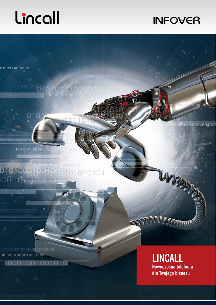 Lincall Nowoczesna telefonia dla Twojego biznesu Lincall to innowacyjne rozwiązanie telekomunikacyjne autorstwa firmy Infover. Nasza platforma zapewnia optymalizację procesów biznesowych wewnątrz firmy czy instytucji, a także efektywnie usprawnia komunikację z Klientami. W skład rodziny produktów Lincall wchodzą Centrala IP, System Call Center, a także usługa Contact Center. Dodatkowo, każdy z elementów platformy może funkcjonować w modelu Cloud oraz stacjonarnie. Rozwiązania Lincall, w przeciwieństwie do wielu dostępnych na rynku usług telekomunikacyjnych, są polskim produktem. Gwarantuje to nie tylko wysoką jakość oferowanych narzędzi, ale przede wszystkim szybką możliwość rozbudowy i aktualizacji. Ponadto atrakcyjny model licencjonowania i niezależność od producenta sprzętu pozwoli zminimalizować koszty związane z wdrożeniem i utrzymaniem szeroko dostępnej komunikacji. POZNAJ PRODUKTY LINCALL LINCALL CENTRALA IP Lincall Centrala IP to elastyczny system komunikacyjny, który udoskonala komunikację w biznesie. Działa w oparciu o architekturę IP i umożliwia zestawienie połączeń audio oraz audio-wideo. W Lincall Centrali IP zaimplementowane zostały wszystkie funkcje standardowej centrali telefonicznej. Wiele z nich zostało rozszerzonych, dzięki czemu system daje użytkownikom większe możliwości niż tradycyjne rozwiązania. Zalety • Jedna licencja na system • Łatwa rozbudowa sprzętu uzależniona od potrzeb i rozwoju Twojej firmy • Niezależność od producenta sprzętu • Wbudowany rejestrator rozmów • Rozwiązanie szyte na miarę- ściśle dopasowane do potrzeb i oczekiwań klientów LINCALL SYSTEM CALL CENTER Lincall System Call Center to oprogramowanie, Zalety które powstało w celu obsługi dużej ilości połączeń • Wbudowany mechanizm skryptów rozmów przychodzących oraz kampanii wychodzących. Integracja • Pełna historia kontaktów z Klientami Lincall Call Center z Centralą IP daje możliwość stworzenia • Optymalizacja zatrudnienia kompleksowych rozwiązań telekomunikacyjnych. System • Ewidencja czasu pracy konsultantów jest stale rozwijany, a dzięki zastosowaniu najnowszych • Brak licencji firm trzecich technologii, można go łatwo modyfikować. • Automatyzacja kampanii wychodzących LINCALL CONTACT CENTER Lincall Contact Center to kompleksowe Telefoniczne Biuro Obsługi Klienta. Specjalizuje się w prowadzeniu szerokich kampanii przychodzących (inbound) i wychodzących (outbound), a także w obsłudze infolinii, serwisów konsumenckich, badaniach opinii czy windykacji należności. Zalety • Wzrost sprzedaży • Poprawa wizerunku firmy • Zwiększenie udziałów w rynku • Oszczędności • Lojalność Klientów • Wzrost konkurencyjności LINCALL CLOUD Usługa Lincall Cloud powstała z myślą o Klientach, którzy cenią sobie oszczędności, szybkość zarządzania i mobilność. Nasza chmura zapewnia większą elastyczność i efektywniejsze zarządzanie zasobami. Zalety • Minimalizacja kosztów (brak opłaty instalacyjnej, brak kosztów związanych z utrzymaniem systemu) • Elastyczny okres umowy • Optymalizacja zatrudnienia • Atrakcyjne koszty połączeń – brak abonamentu • Dostępność 24 godziny na dobę, 7 dni w tygodniu z dowolnego miejsca na świecie • Zapasowe Data Center (dane przechowywane w kliku geograficznie rozproszonych lokalizacjach) Zapraszamy do kontaktu. Zespół naszych inżynierów jest gotowy do realizacji projektu dla Państwa firmy lub instytucji. O FIRMIE Od ponad 20 lat projektujemy i wdrażamy systemy informatyczne kierując się indywidualnymi potrzebami naszych Klientów. Specjalizujemy się w systemach dedykowanych. Tworzymy oprogramowanie, integrujemy systemy informatyczne, dostarczamy sprzęt IT. Oferujemy rozwiązania o szerokim spektrum biznesowym w szczególności w dziedzinie dystrybucji, logistyki, planowania, handlu, branży budowlanej i surowców mineralnych. Istotnym elementem działania firmy jest budowa dedykowanych rozwiązań służących do obsługi e-biznesu. Wysoką pozycję wśród największych w Polsce dostawców rozwiązań i usług informatycznych zawdzięczamy doświadczeniu i zaangażowaniu zespołu posługującego się ujednoliconą metodyką. Nasze osiągnięcia zostają doceniane nie tylko wśród Klientów, ale także specjalistów. Świadczą o tym przyznane firmie wyróżnienia (Gazele Biznesu czy Diamenty Forbesa), w tym miejsce w pierwszej sześćdziesiątce największych firm teleinformatycznych rankingu prestiżowego magazynu „Computerworld”. Zatrudniamy ponad 200 wykwalifikowanych architektów systemowych, inżynierów i specjalistów. Zrealizowaliśmy kompleksowo kilkaset projektów. Z naszych doświadczeń korzystają przedsiębiorstwa będące liderami w swoich branżach. Stale rozwijamy i udoskonalamy nasze systemy dostosowując je do zachodzących zmian i rozwoju rynku. Jesteśmy gotowi zaangażować się w realizację projektu dla Państwa. Zaufali nam Inteligentne rozwiązania infover.pl Dział Sprzedaży Lincall tel.: +48 41 310 68 94, +48 41 367 85 03 fax: +48 41 345 15 65 e-mail: [email protected]