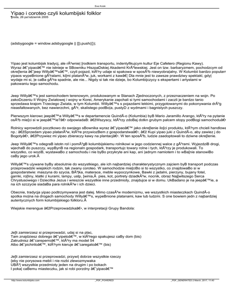 Bogoty―, „Przywiez mi yipao zbieraczy kawy na plantacj―. W ten sposób, ludzie zaadoptowali to dziwne okre[lenie.