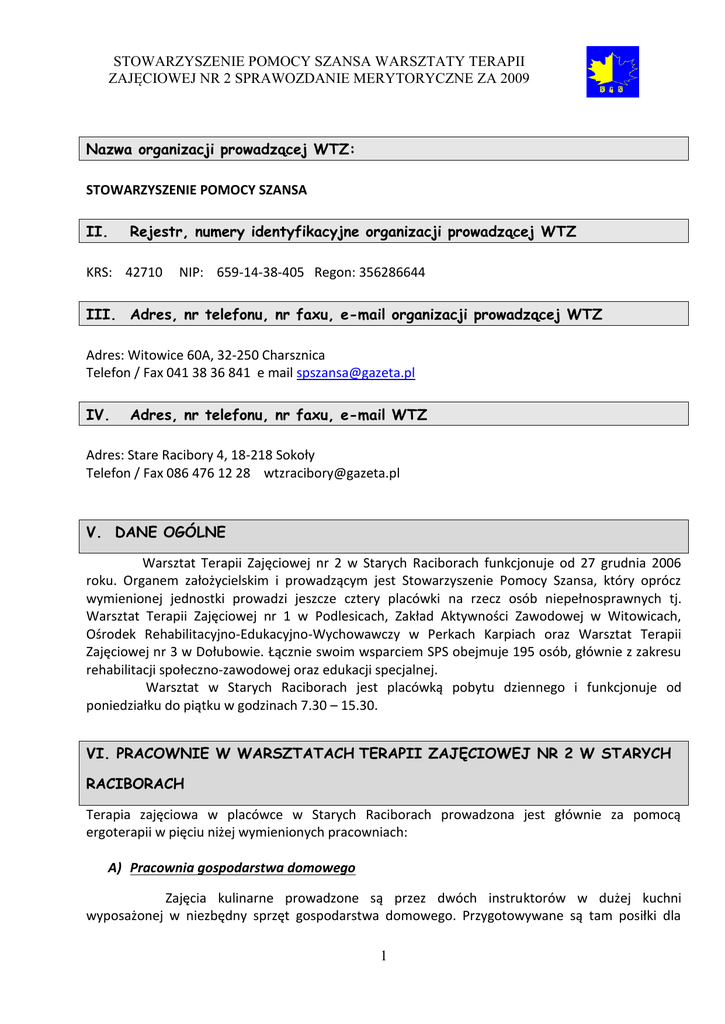 Sprawozdanie WTZ Stare Racibory 2009
