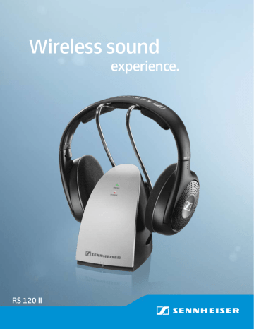 Wireless sound RS 120 II experience. Enjoy wireless RS 110 II freedom. RS 120 II The RS 120 II is an open, supra-aural wireless RF headphone system. Its transparent and well-balanced sound with great bass response makes this system an ideal choice for all types of music and TV applications. Furthermore, its innovative „easy recharge“ function offers the ultimate in convenience when it comes to charging and storing your wireless headphones. Enjoy total freedom of sound, stylish design and maximum comfort, all at an affordable price. etailed, warm sound reproduction with D strong bass Suitable for all types of modern music and TV applications Wireless freedom with reception through walls and ceilings, up to 130 metres (430 feet) Volume and tuning controls conveniently located on the headphone Multi-functional transmitter with ‚easycharge‘ function (transmitter, charging cradle and docking station) Optional wall mounting of transmitter RS 110 II The RS 110 II is an open, supra-aural wireless RF headphone system. Its transparent and well-balanced sound with great bass response makes this system an ideal choice for all types of music and TV applications. Enjoy total freedom of sound without a physically restricting cable at an affordable price. The ideal entry into the cordless world of sound. etailed, warm sound reproduction with D strong bass Suitable for all types of modern music and TV applications Wireless freedom with reception through walls and ceilings, up to 150 metres (500 feet) Volume and tuning controls conveniently located on the headphone Lightweight and comfortable RS 110 II RS 120 II EAN UPC Artikel-Nr. 4044155071788 615104218345 504775 4044155071825 615104218413 504779 Transducer principle Ear coupling Frequency response Impedance THD at 1 kHz, 100 dB SPL SPL (1 kHz, 1 Vrms) Power supply Operating time Weight HDR 110 II (Receiver) Open, dynamic Supraaural 22 - 19,500 Hz 24 O < 0.7 % 106 dB 2 AAA cells 22 hours 230 g HDR 120 II (Receiver) Open, dynamic Supraaural 22 - 19,500 Hz 24 O < 0.7 % 106 dB 2 AAA cells 20 hours 230 g TR 110 II (Transmitter) FM, Stereo I/p: 100-240 V AC, 50-60 Hz, 0.1 A/o/p: 9V DC, 0.34 A, 3.06 W < 1.8 V > 65 dBA RCA phono plug, 3.5 mm / 6.3 mm stereo 180 g 85 x 110 x 133 mm 926.15 MHz - 927.55 MHz 3 TR 120 II (Transmitter) FM, Stereo I/p: 100-240 V AC, 50-60 Hz, 0.1 A/o/p: 9V DC, 0.34 A, 3.06 W < 1.8 V > 65 dBA RCA phono plug, 3.5 mm / 6.3 mm stereo 200 g 85 x 225 x 133 mm 926.15 MHz - 927.55 MHz 3 HDR 110 II headphones TR 110 II transmitter 1 DC supply adapter 1 detachable audio cable 2 AAA rechargeable batteries Instruction manual HDR 120 II headphones TR 120 II transmitter 1 DC supply adapter 1 detachable audio cable 2 AAA rechargeable batteries Instruction manual Packaging design recloseable cardboard box recloseable cardboard box Dimensions of Product packaging (H x W x D) 265 x 216 x 138 mm 307 x 214 x 138 mm Weight of product and packaging Dimensions of inner master carton (H x W x D) 0,99 kg 740 x 480 x 310 mm 1,05 kg 740 x 480 x 350 mm Total weight of inner master carton and products 13,40 kg 14,08 kg Amount of products in inner master carton 10 10 Languages English, German, French, Italian, Spanish, Netherlands, Portuguese English, German, French, Italian, Spanish, Netherlands, Portuguese Modulation Power supply Power consumption Signal-to-noise ratio Connector Weight Dimension Frequency range No. of channels Delivery includes Packaging 542554 04/11 Printed in Germany Sennheiser is a registered trademark of Sennheiser electronic GmbH & Co. KG www.sennheiser.com Technical Data