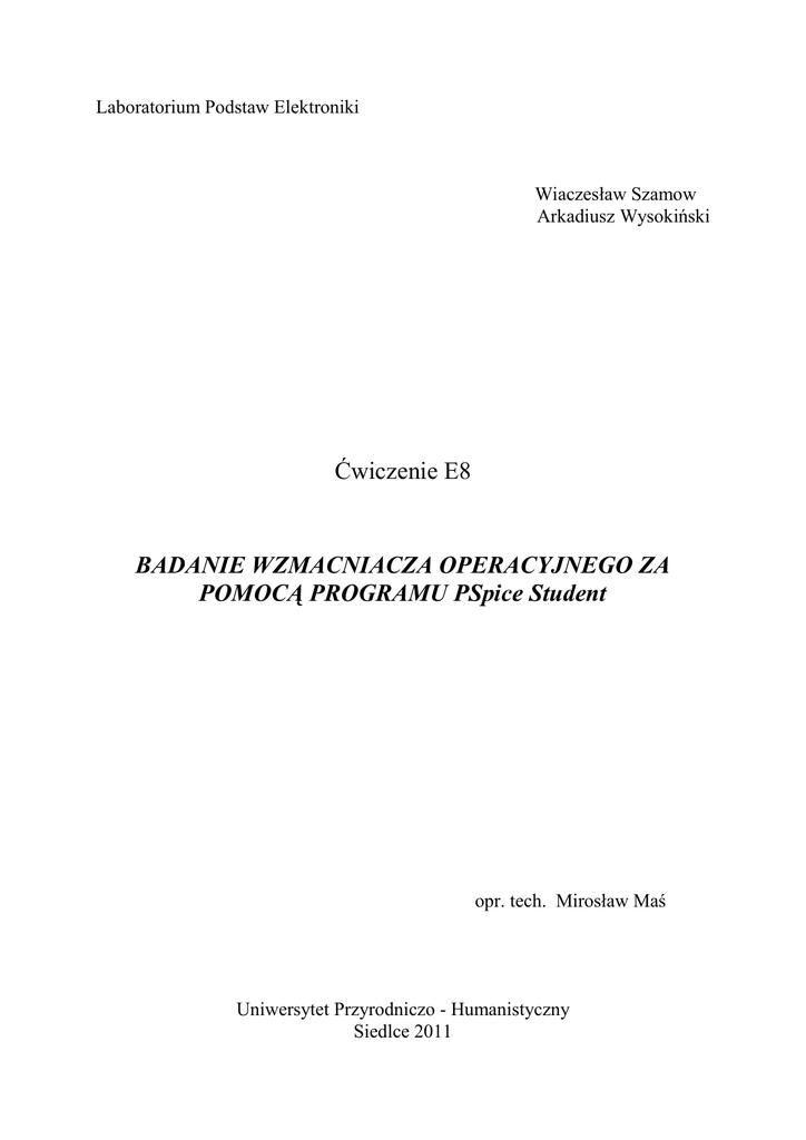 Ćwiczenie E8 BADANIE WZMACNIACZA OPERACYJNEGO ZA