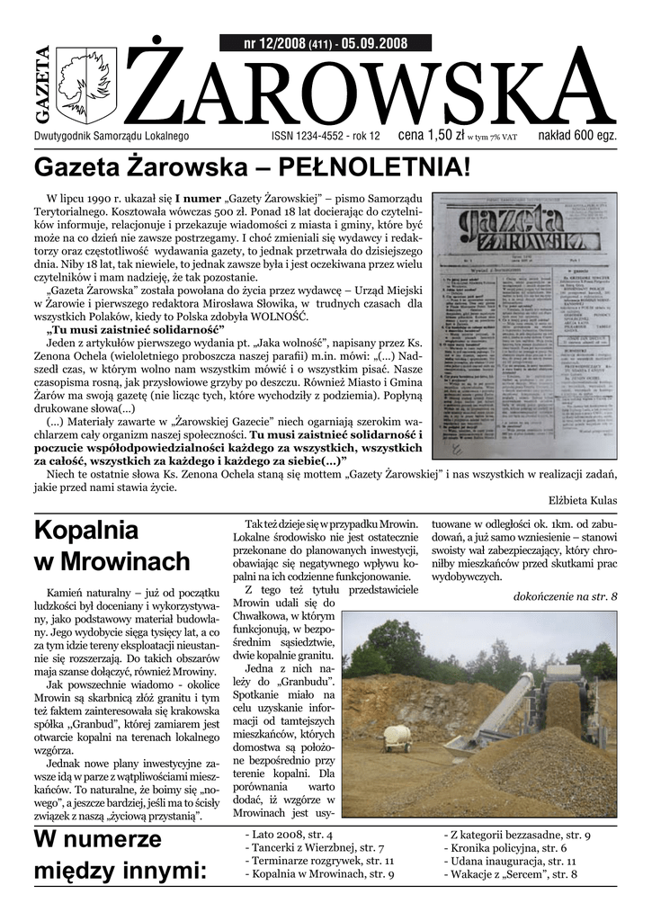 Gazeta Żarowska – PEŁNOLETNIA! Kopalnia w