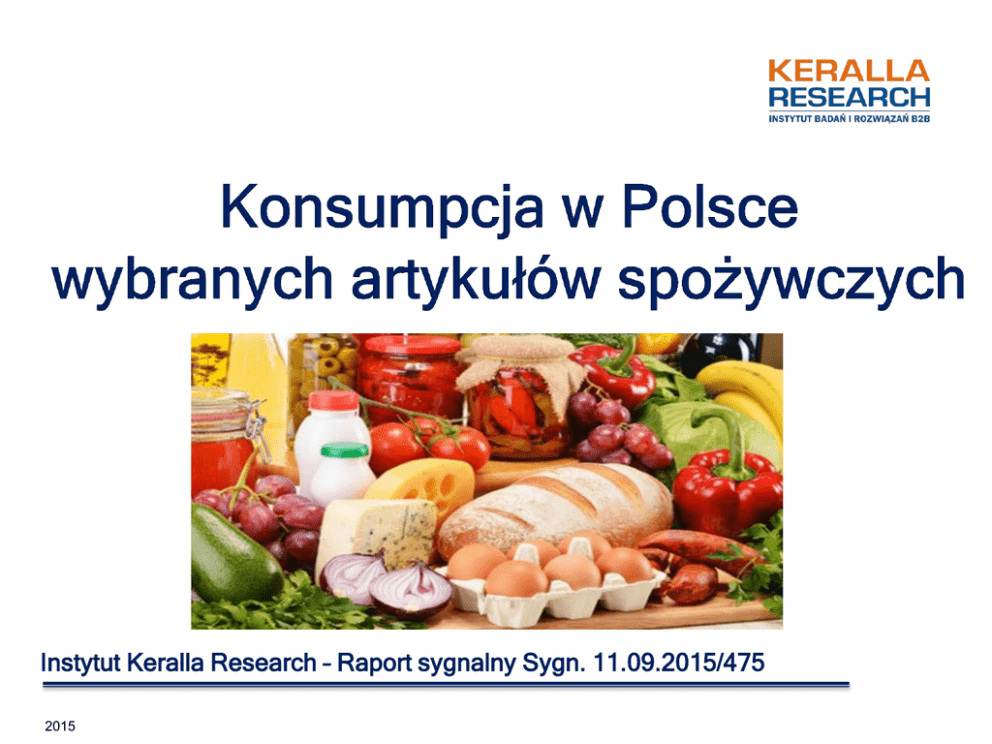 Instytut Keralla Research – Raport sygnalny Sygn. 11.09.2015/475 2015 1.1. Konsumpcja wybranych wyrobów spożywczych w Polsce Najwięcej w Polsce spożywamy wyrobów zawierających mąkę. Według raportu GUS, w 2014 roku na polski rynek trafiło do konsumpcji 2 mln 222 tys. ton produktów bazujących na mące. Mięso (bez mięsa drobiowego), to drugi najczęściej konsumowany produkt. W 2014 roku sprzedano go w ilości 2 mln 38 tys. ton. Natomiast ryby morskie mrożone to tylko 247 tys. ton – wynika z raportu GUS. W sumie w 2014 roku nieznacznie wzrosła konsumpcja zarówno mięsa (o 6,2 proc.) i mąki (o 0,7 proc.) w stosunku do roku poprzedniego. Zmniejszyło się natomiast spożycie ryb morskich – o 8,8 proc. rok do roku. GUS podaje też dane dotyczące konsumpcji w kilogramach w przeliczeniu na jednego mieszkańca Polski. Okazuje się, że znaczącą pozycję mają w polskim menu warzywa, których w 2014 roku średnio przypadało 104 kg na osobę. Według danych organizacji EFSA, Polacy są na pierwszym miejscu w Europie jeśli chodzi o średnie spożycie warzyw i owoców na osobę (577 gramów/dzień). 2 1.2. Rośnie zapotrzebowanie na cukier a spada na wódkę czystą W Polsce rośnie od kilku lat konsumpcja mięsa, maleje natomiast spożycie przetworów mięsnych, konserw, wędlin i ryb. Na krajowy rynek trafiło w 2013 r. ok. 1 mln 920 tys. t. mięsa surowego ze zwierząt rzeźnych, a w 2014 – 2 mln 38 tys. t. Jemy też więcej mięsa drobiowego – w 2013 – 1 mln 497 tys. t., w 2014 – 1 mln 528 tys. t. Przetworów mięsnych i podrobów w 2013 r. dostarczono na rynek 897 tys. t, w 2014 – 869 tys. t., konserw i wędlin w 2013 – 235 tys. t., a w 2013 - 208 tys. t. GUS podaje również, że 2013 ryb mrożonych morskich sprzedano 271 tys. t, a w 2014 roku – 247 tys. t. Ten spadek możliwe, że kompensuje spożycie ryb surowych, których tutaj GUS nie uwzględnia. Rośnie za to konsumpcja cukru; w 2013 roku polski rynek wchłonął 1 mln 612 tys. t. sacharozy, a w 2014 r. było to już 1 mln 708 tys. t. . Progresja spożycia nastąpiła również w przypadku czekolady (w 2013 – 216 tys. t., a w 2014 – 248 tys. t. ). Spada jednocześnie spożycie wódki, likierów i innych napojów alkoholowych – a w szczególności wódki czystej. W 2013 roku na krajowy rynek dostarczono 1 mln 063 tys. hl wódki, w 2014 – 810 tys. hl, czyli o prawie 24 % mniej. 3 1.3. Średnie spożycie na mieszkańca wybranych artykułów spożywczych W zaprezentowanych przez GUS danych dotyczących wybranych produktów spożywczych, wynika, że w 2014 roku Polak zjadł średnio: 101 kg ziemniaków, 104 kg warzyw, 47 kg owoców, 73,6 kg mięsa i podrobów, w tym tylko 1,6 kg wołowiny i 28,2 kg drobiu. W 2014 roku średnio przypadało 44,3 kg cukru na jednego mieszkańca Polski, mleka – 205 litrów i prawie 100 litrów piwa. Jaj zjedliśmy średnio 155 sztuk rocznie. 4 1.4.Keralla Research Instytut Badań i Rozwiązań B2B Źródło: GUS: „Dostawy na rynek krajowy oraz spożycie niektórych artykułów konsumpcyjnych na jednego mieszkańca 2014 roku” – Warszawa 2015 r. Keralla Research Instytut Badań i Rozwiązań B2B Wrocław, ul. Kazimierza Wielkiego 67 Tel. 71 335 77 82 www.keralla.pl [email protected] 5