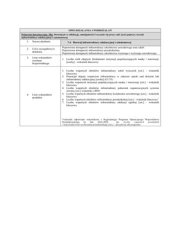 OPIS DZIAŁANIA I PODDZIAŁAŃ Priorytet inwestycyjny 10a