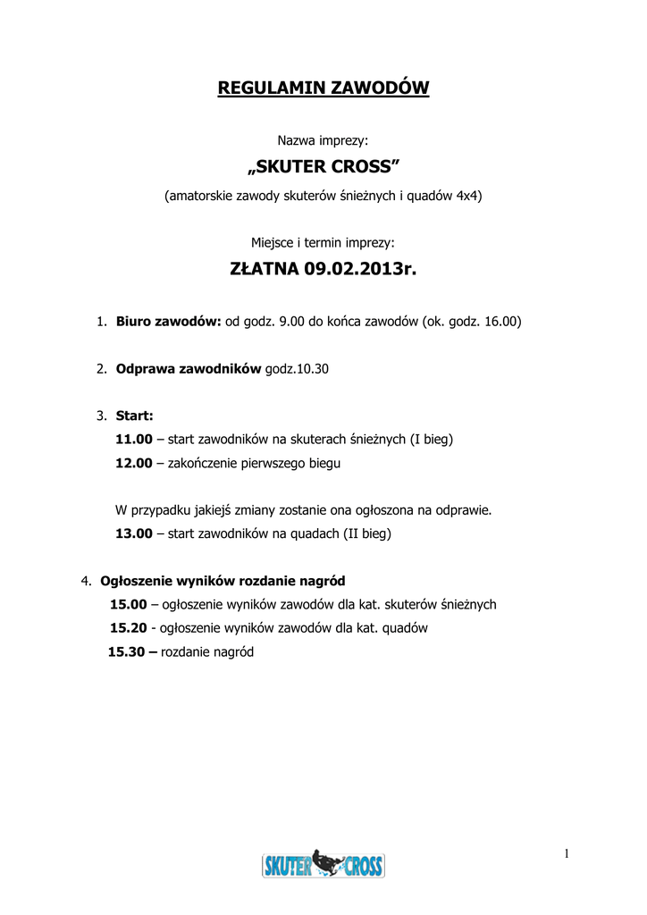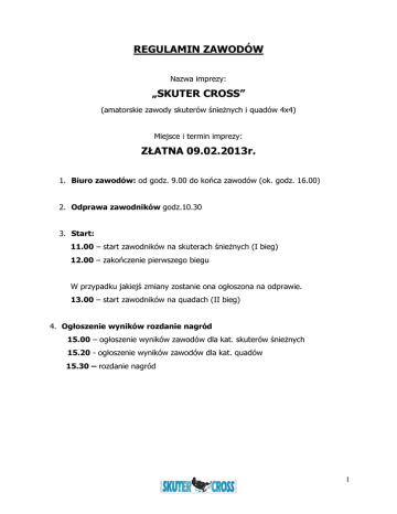 REGULAMIN ZAWODÓW „SKUTER CROSS” ZŁATNA 09.02.2013r.