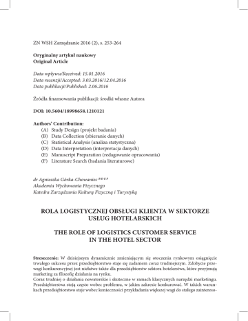 rola logistycznej obsługi klienta w sektorze usług hotelarskich the