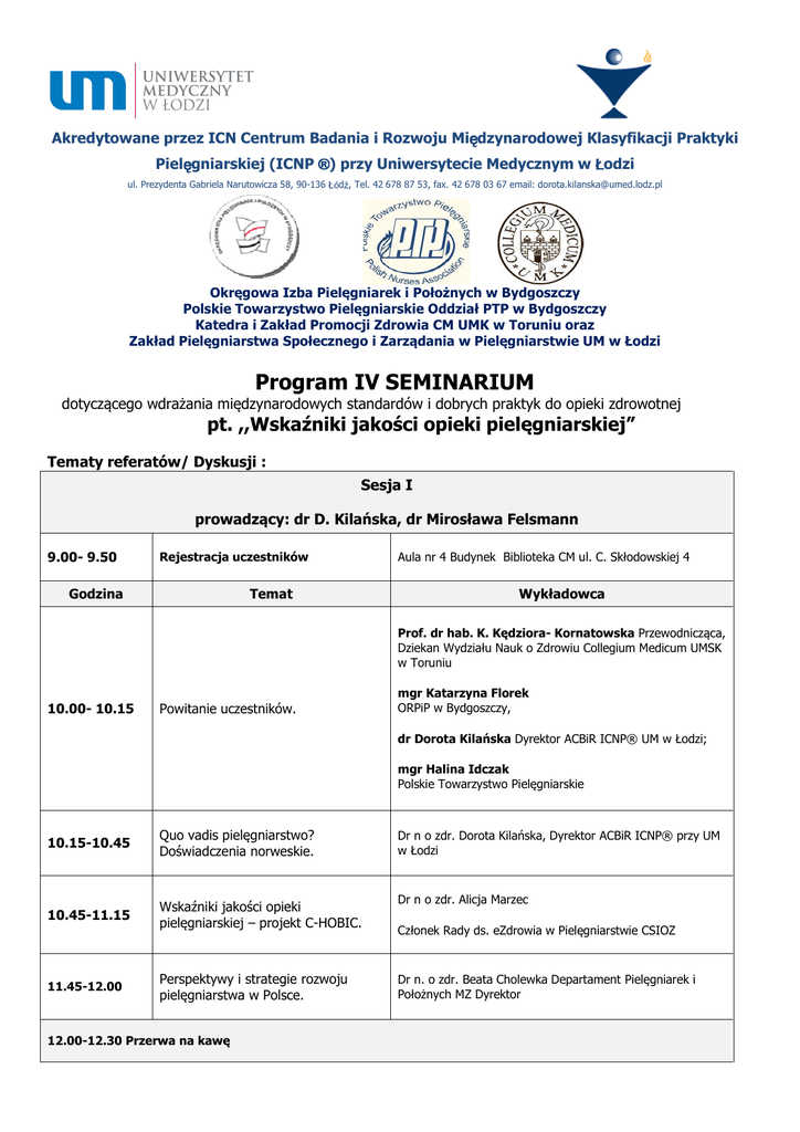 Program Program IV SEMINARIUM - Okręgowa Izba Pielęgniarek i